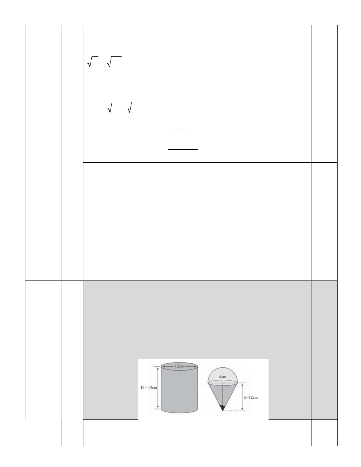Chú ý: Nếu hs ra kết quả sai nhưng tính đúng được hình nón hoặc nửa