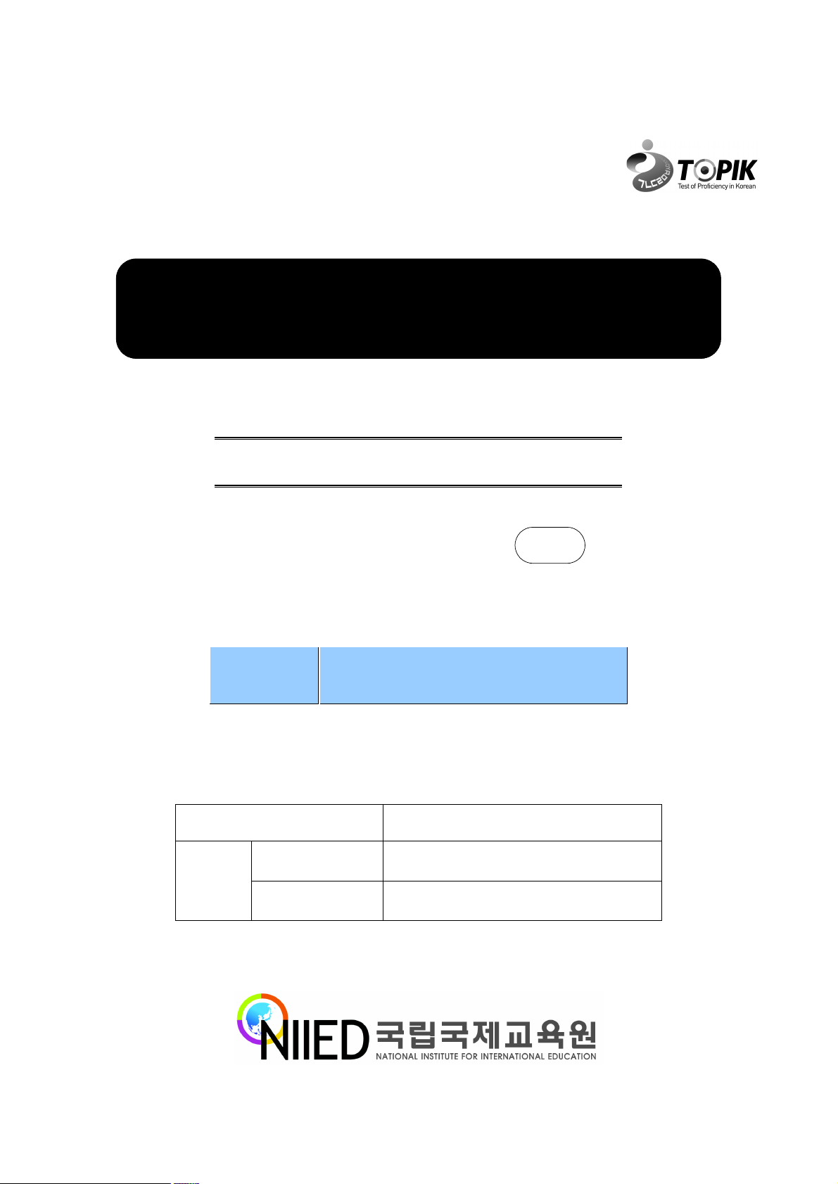일반한국어능력시험(S-TOPIK) 중급(Intermediate) B 2교시 이해 (듣기, 읽기) 수험번호(Application No.) 이 름 한국어(Korean) (Name) 영 어(English) 유 의 사 항 Information