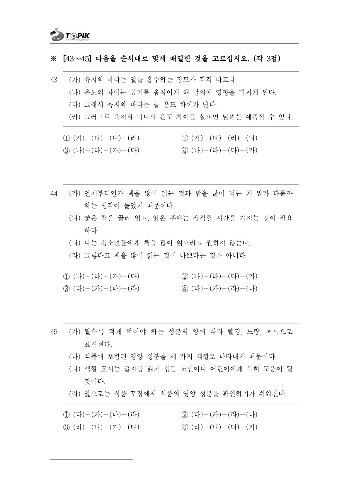 ④ (다)-(가)-(라)-(나) 45.