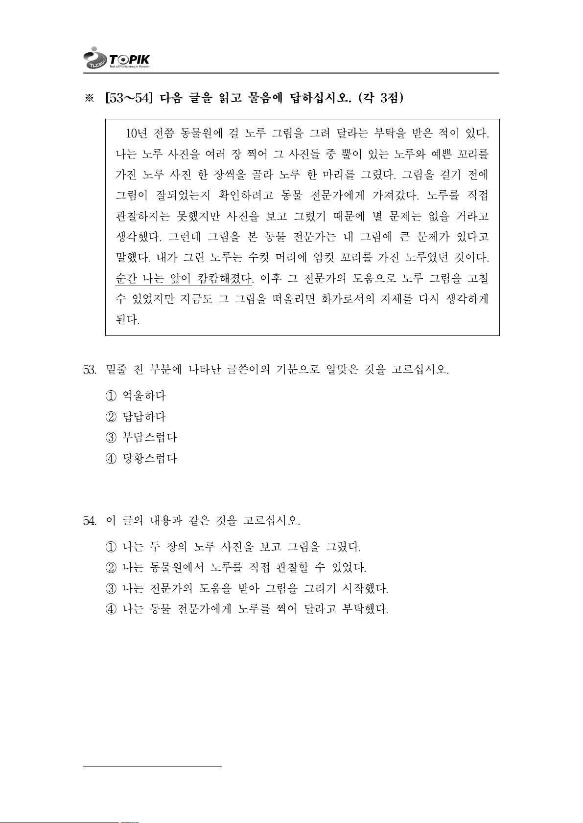 ※ [53~54] 다음 글을 읽고 물음에 답하십시오. (각 3점)