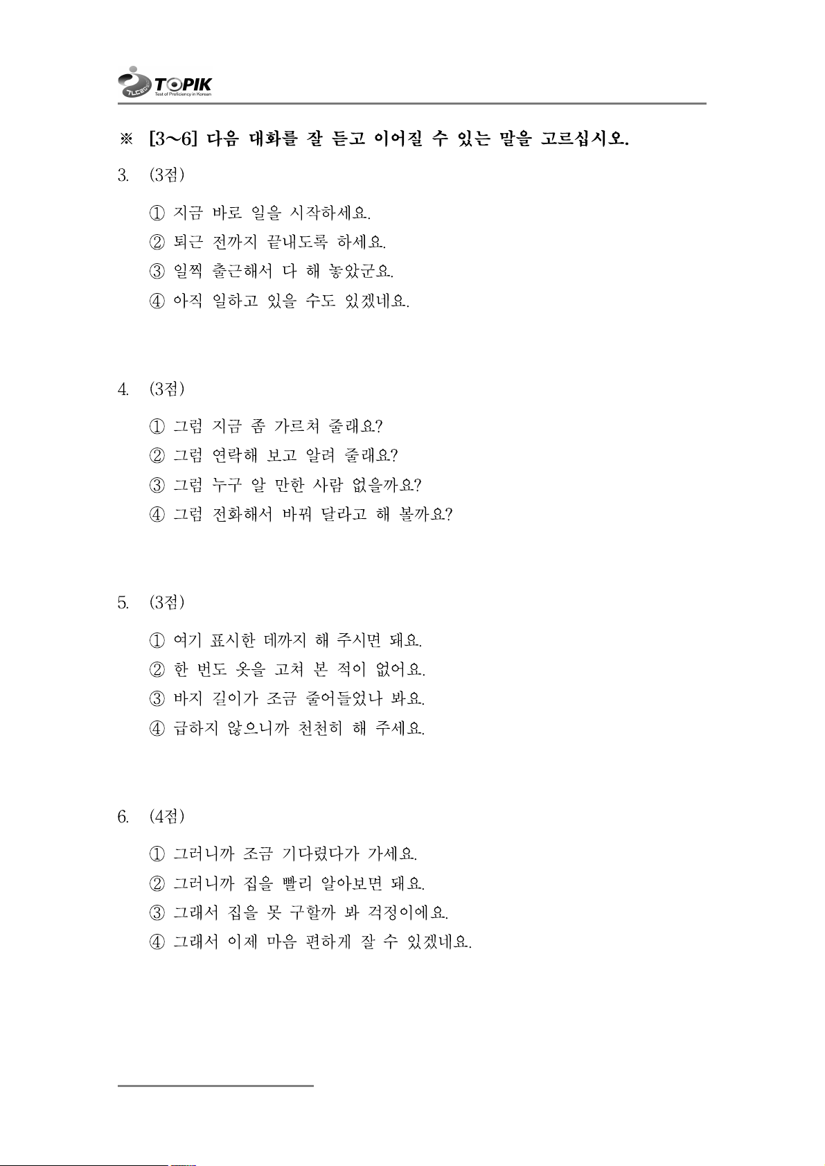 ※ [3~6] 다음 대화를 잘 듣고 이어질 수 있는 말을 고르십시오. 3. (3점)