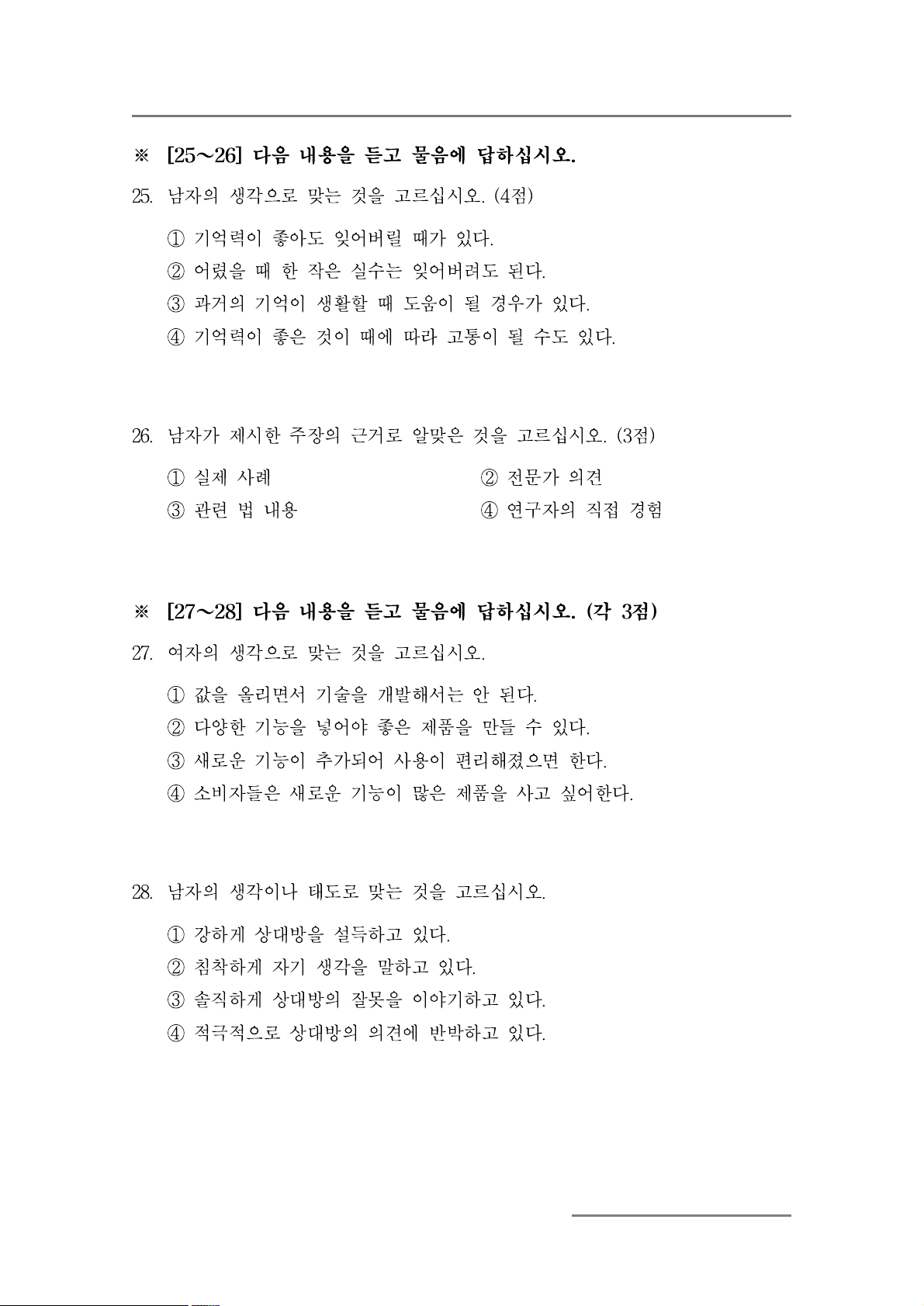 ※ [23~24] 다음 내용을 듣고 물음에 답하십시오. (각 3점)