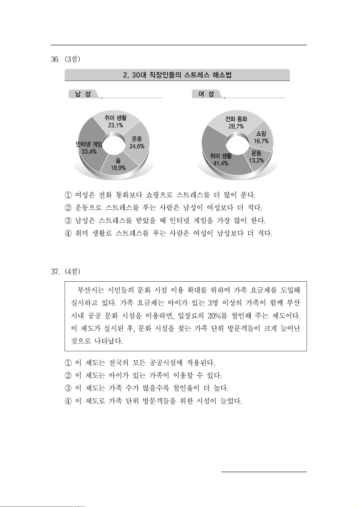④ 주말에는 가족과 함께 시간을 보내야 한다. 15. (4점)