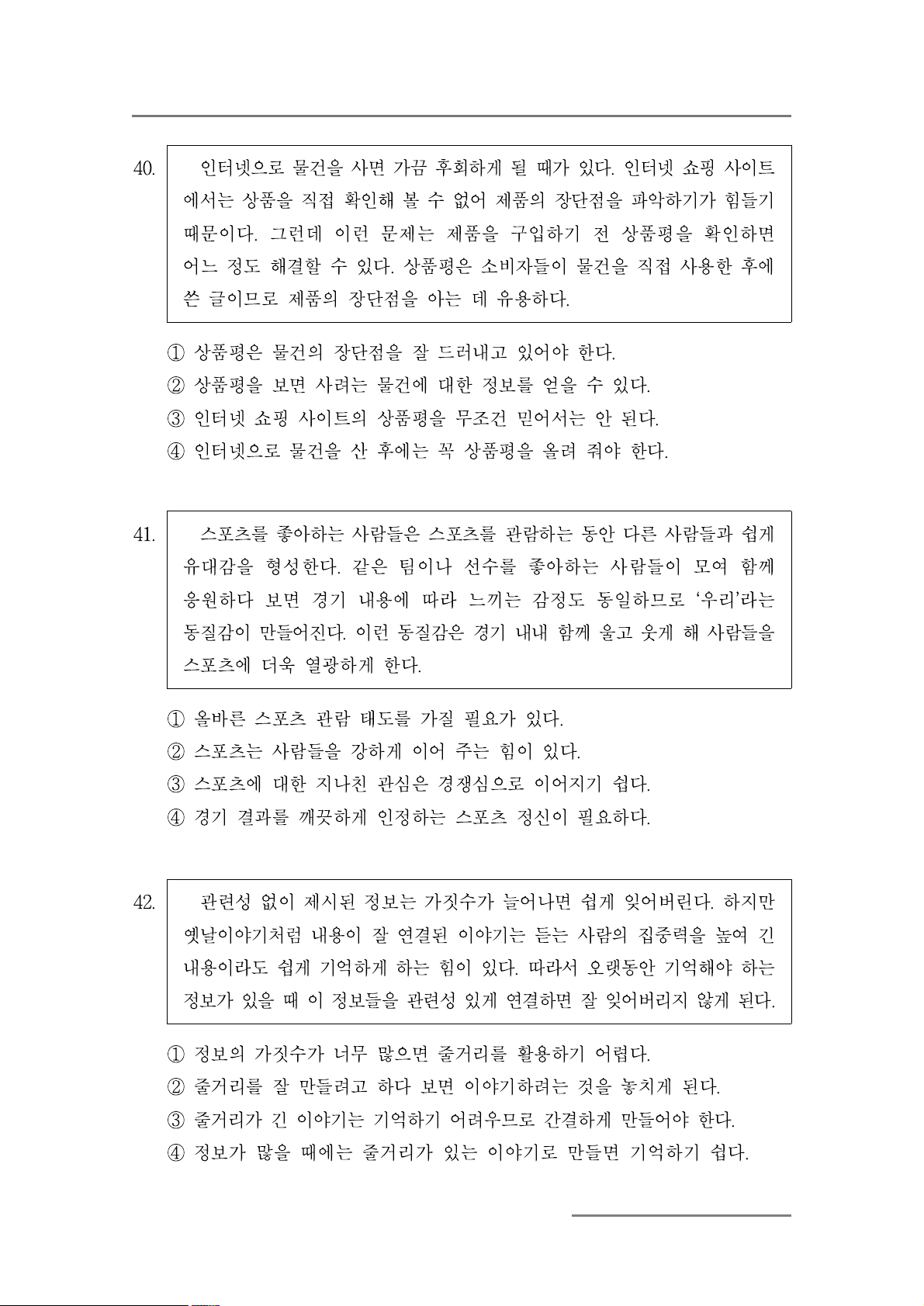51. 이 글의 중심 생각을 고르십시오. (4점)