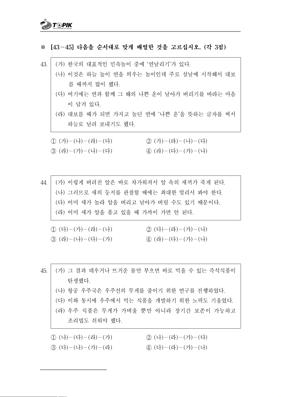 ④ (다)-(라)-(가)-(나) 14 중급 이해 (듣기, 읽기)