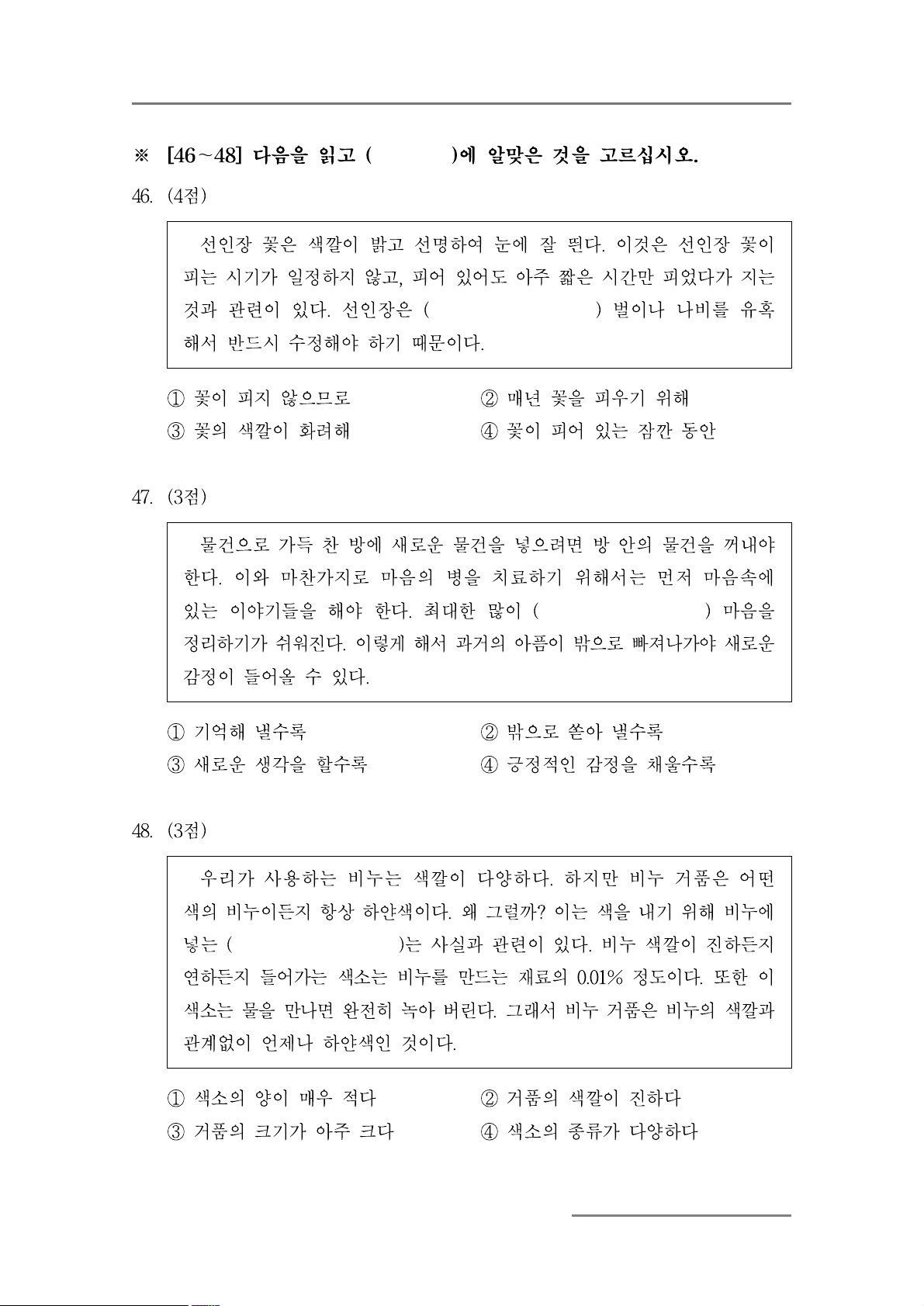 )에 알맞은 것을 고르십시오. 46. (4점)