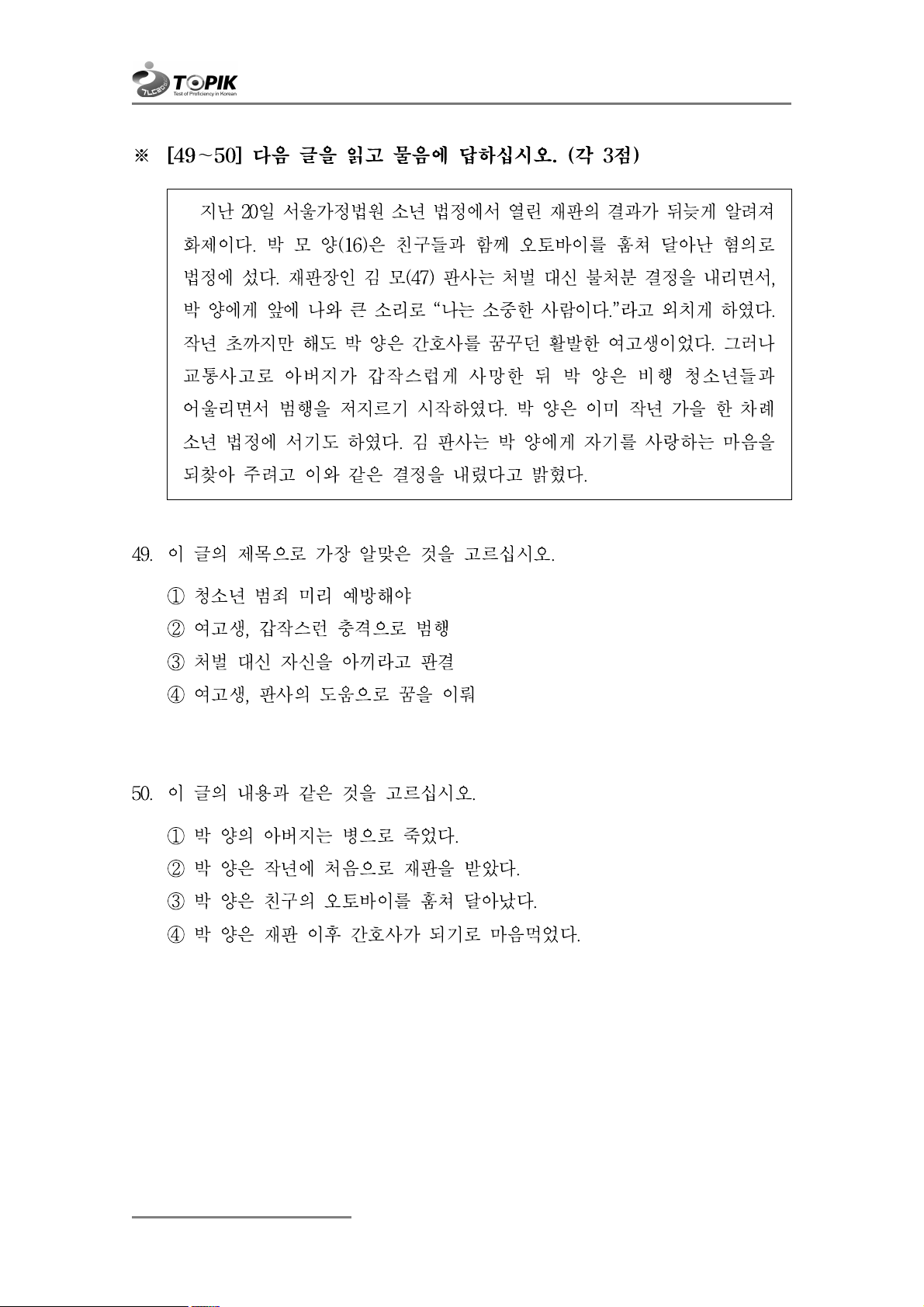※ [49~50] 다음 글을 읽고 물음에 답하십시오. (각 3점)