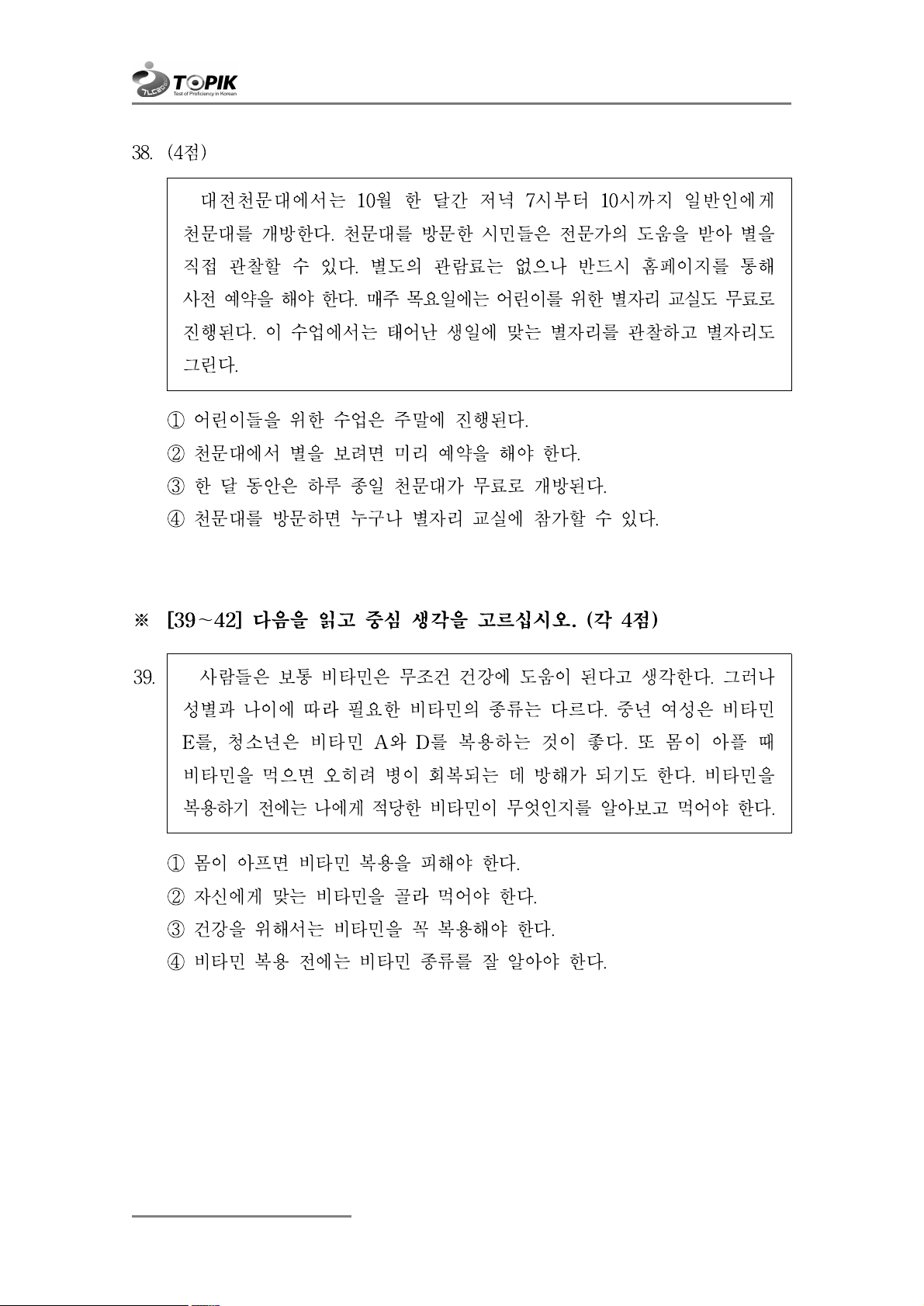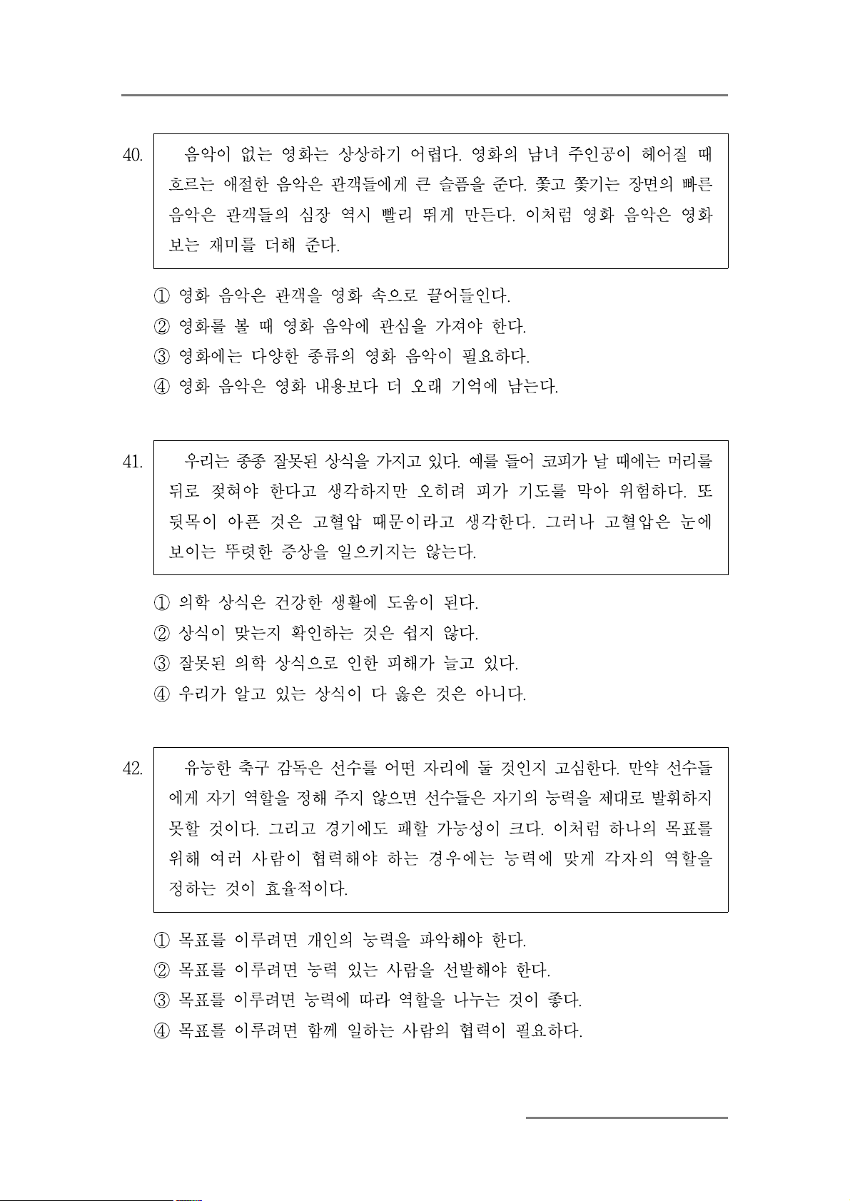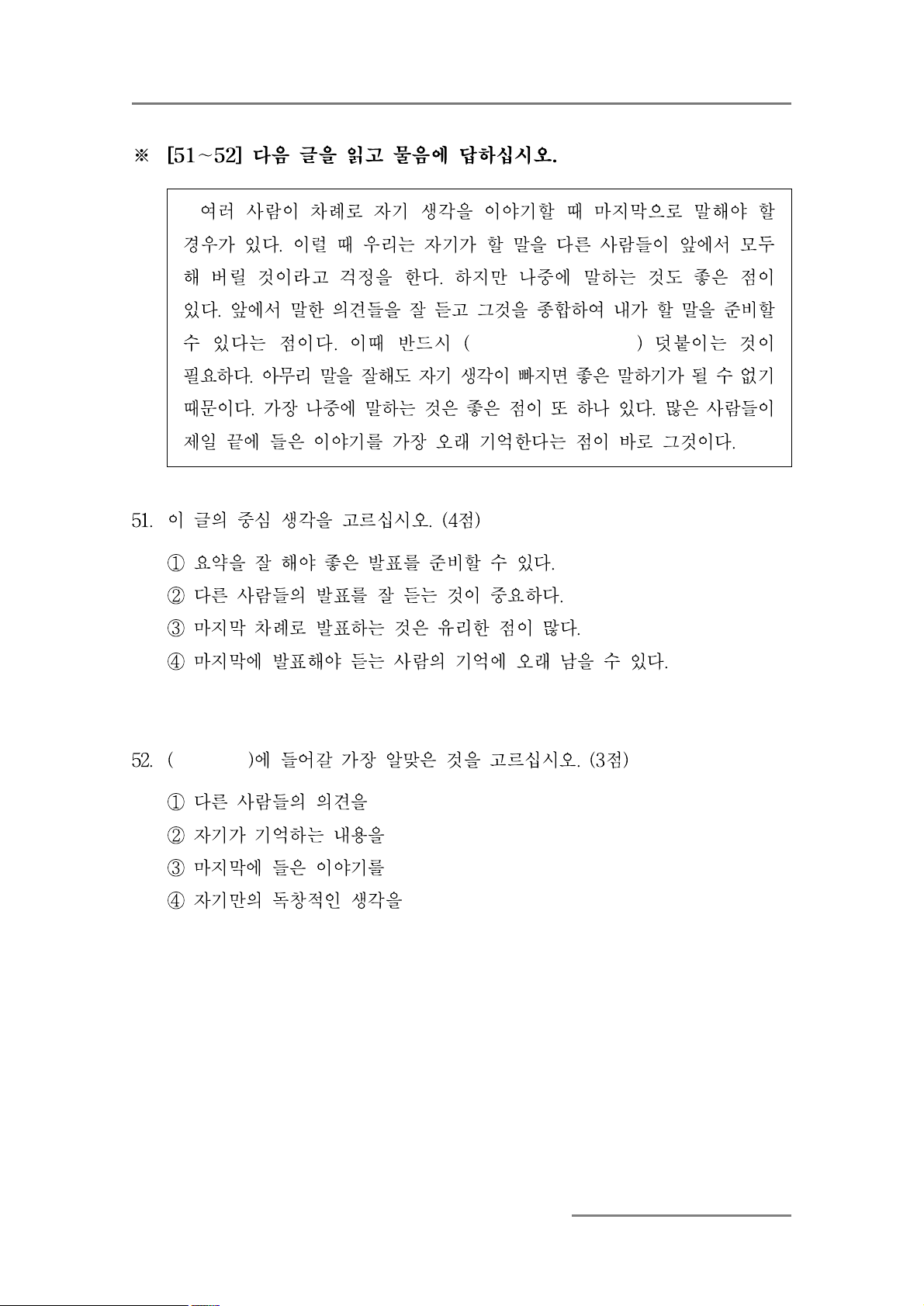 51. 이 글의 중심 생각을 고르십시오. (4점)