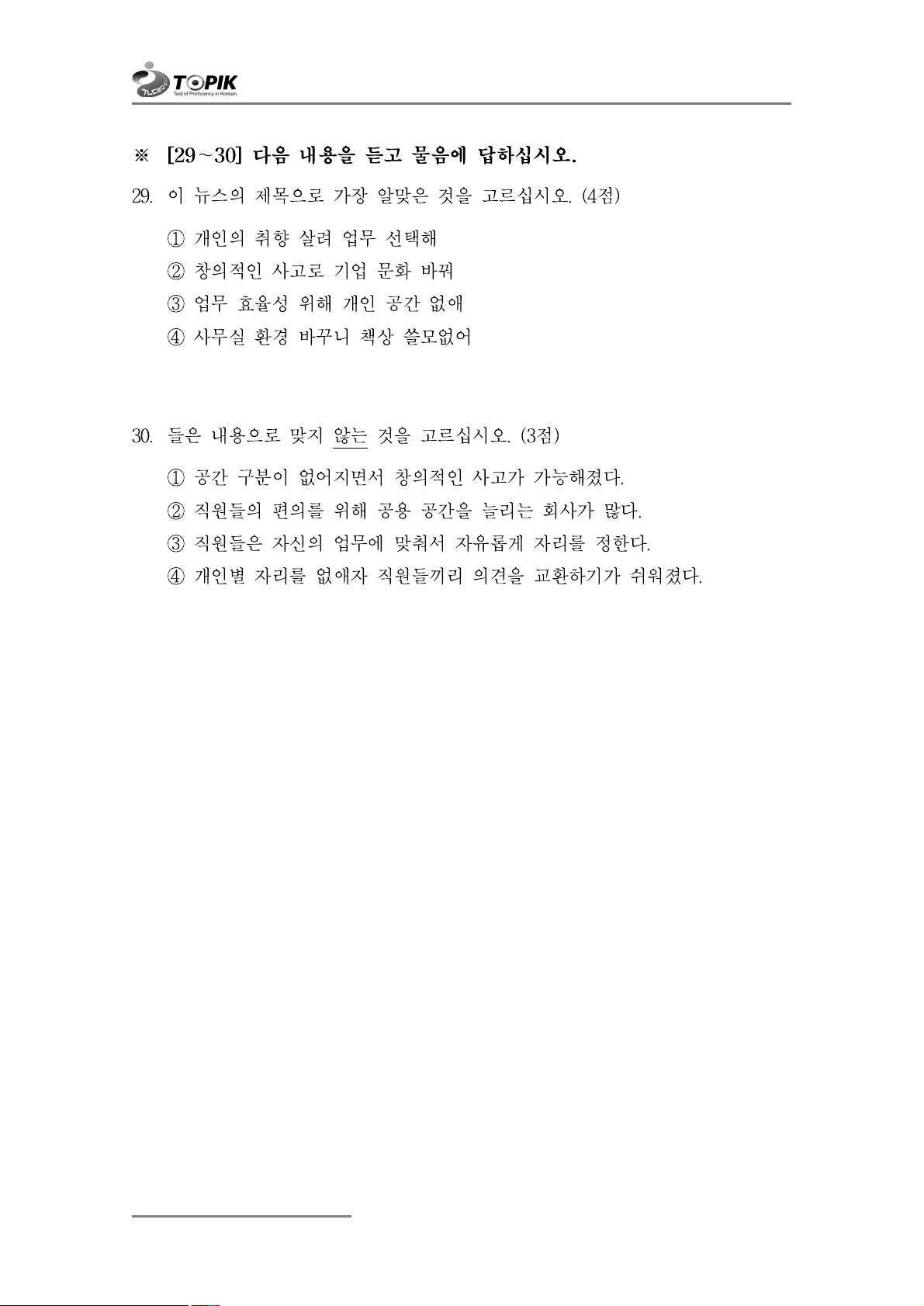 21. 들은 내용으로 맞는 것을 고르십시오.