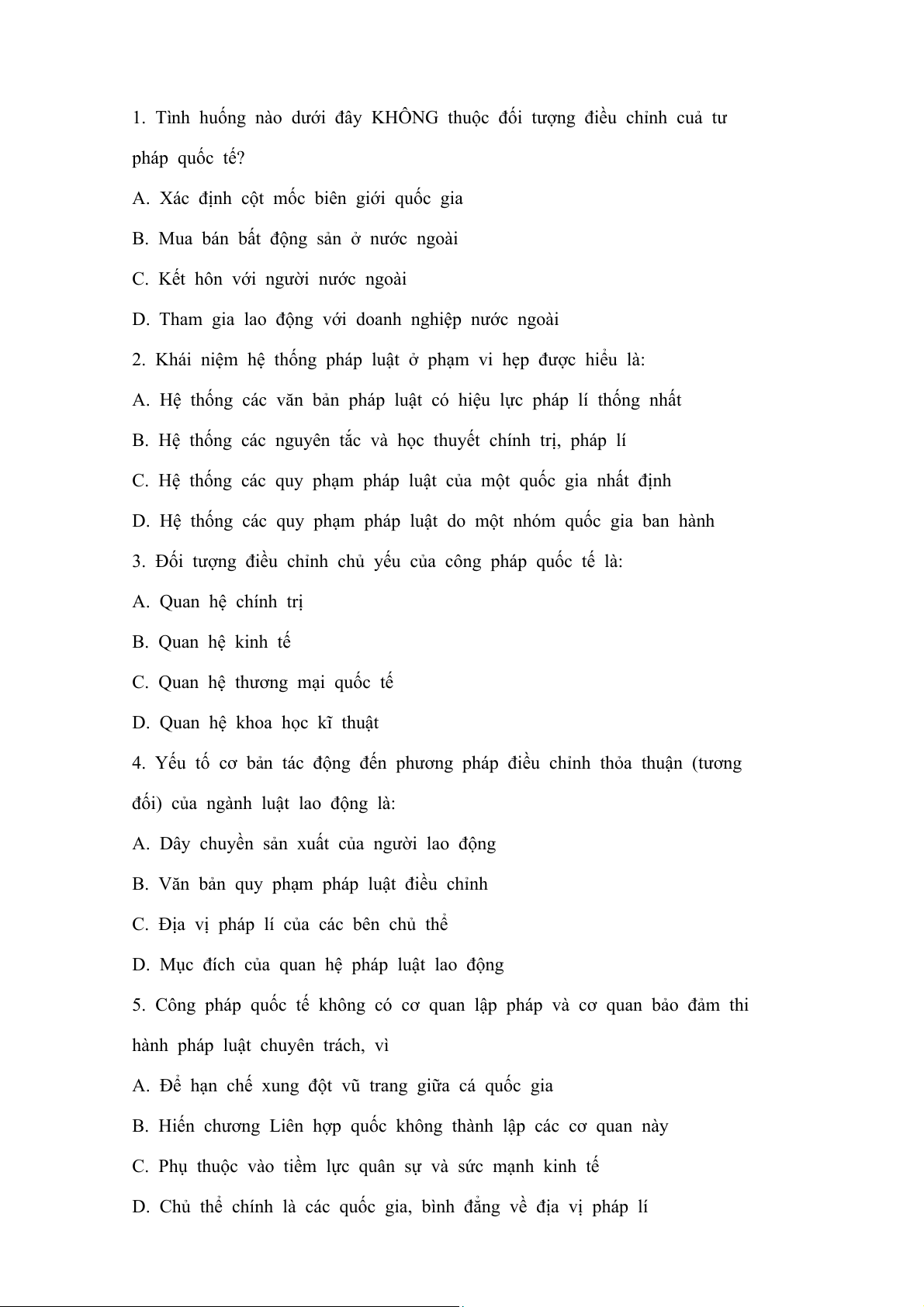1. Tình huống nào dưới đây KHÔNG thuộc đối tượng điều chỉnh cuả tư pháp quốc tế?