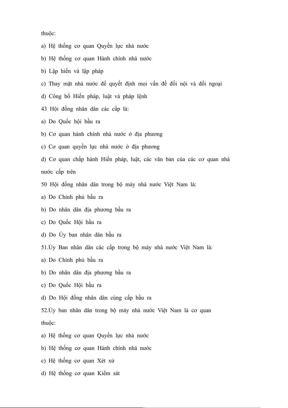 50 Hội đồng nhân dân trong bộ máy nhà nước Việt Nam là: a) Do Chính phủ bầu ra