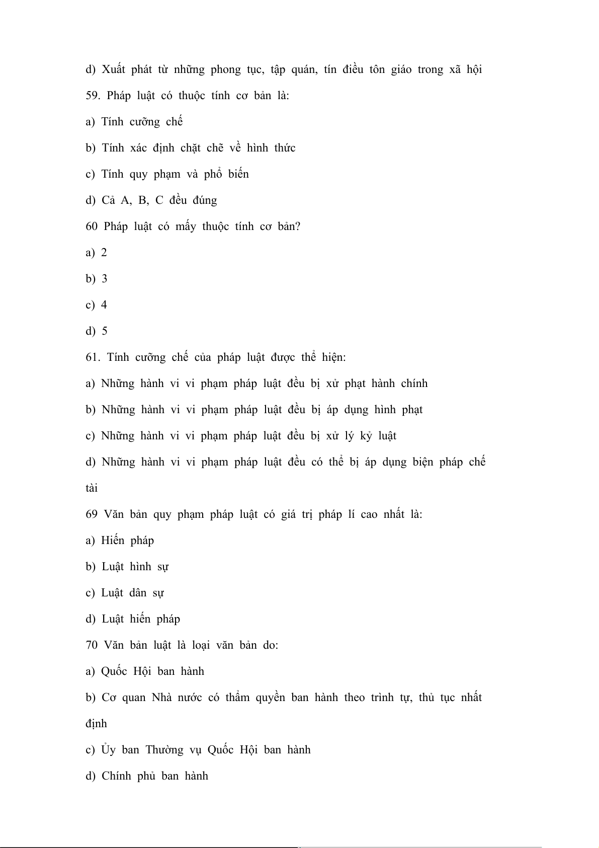 60 Pháp luật có mấy thuộc tính cơ bản? a) 2 b) 3 c) 4 d) 5