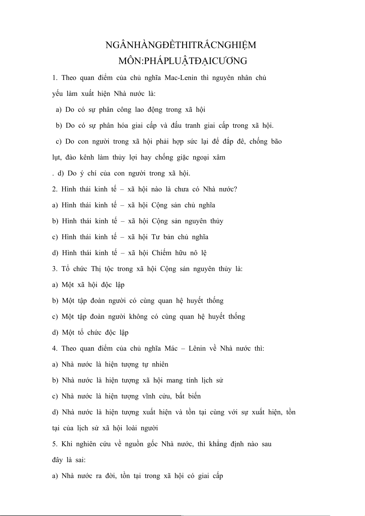 56 Nguyên nhân ra đời của nhà nước và pháp luật là: a) Hoàn toàn giống nhau b) Hoàn toàn khác nhau