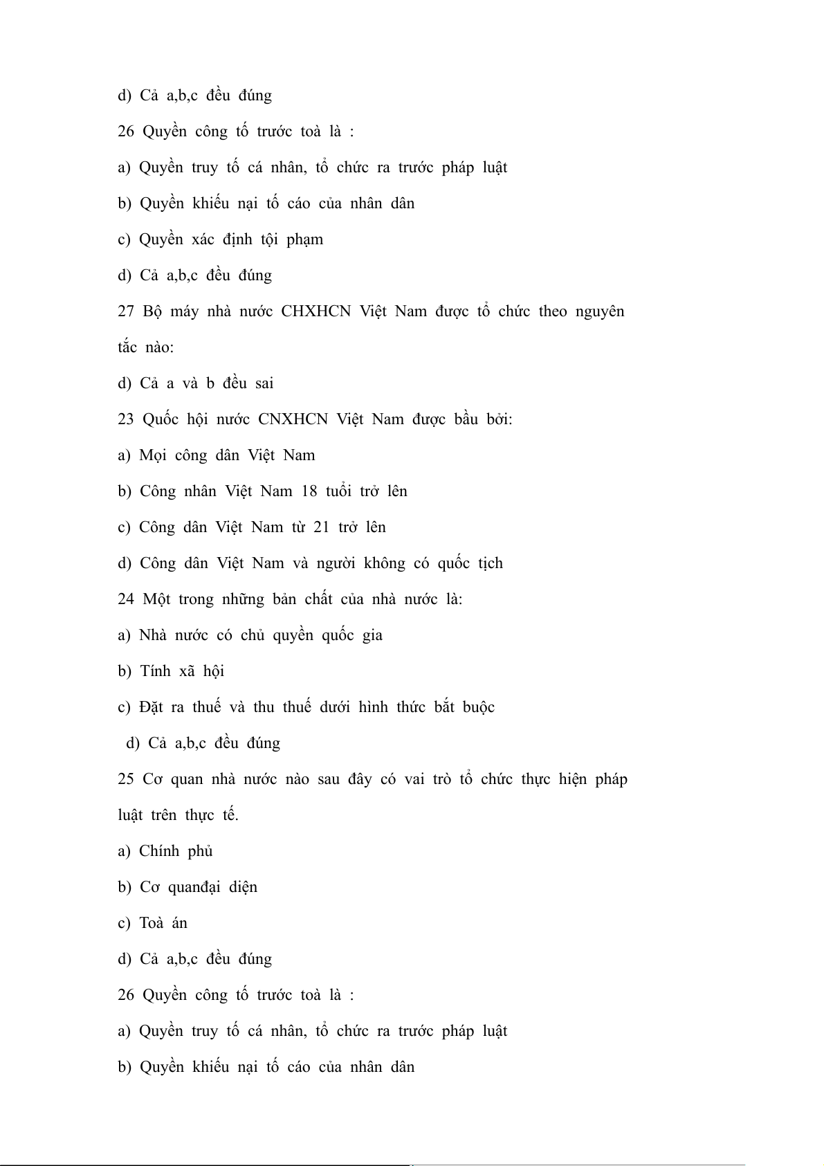 27 Bộ máy nhà nước CHXHCN Việt Nam được tổ chức theo nguyên tắc nào: d) Cả a và b đều sai