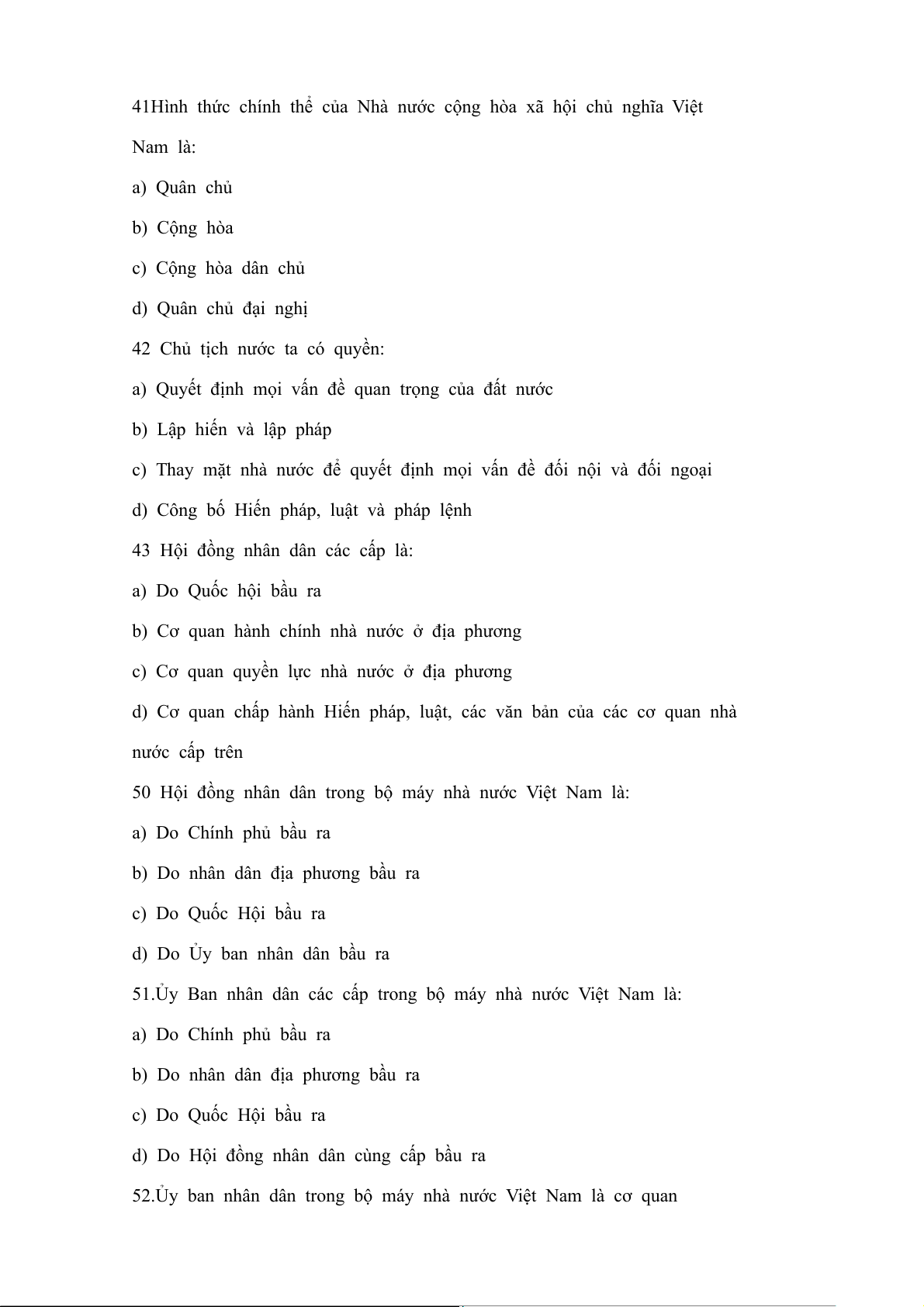 41Hình thức chính thể của Nhà nước cộng hòa xã hội chủ nghĩa Việt Nam là: a) Quân chủ b) Cộng hòa c) Cộng hòa dân chủ d) Quân chủ đại nghị