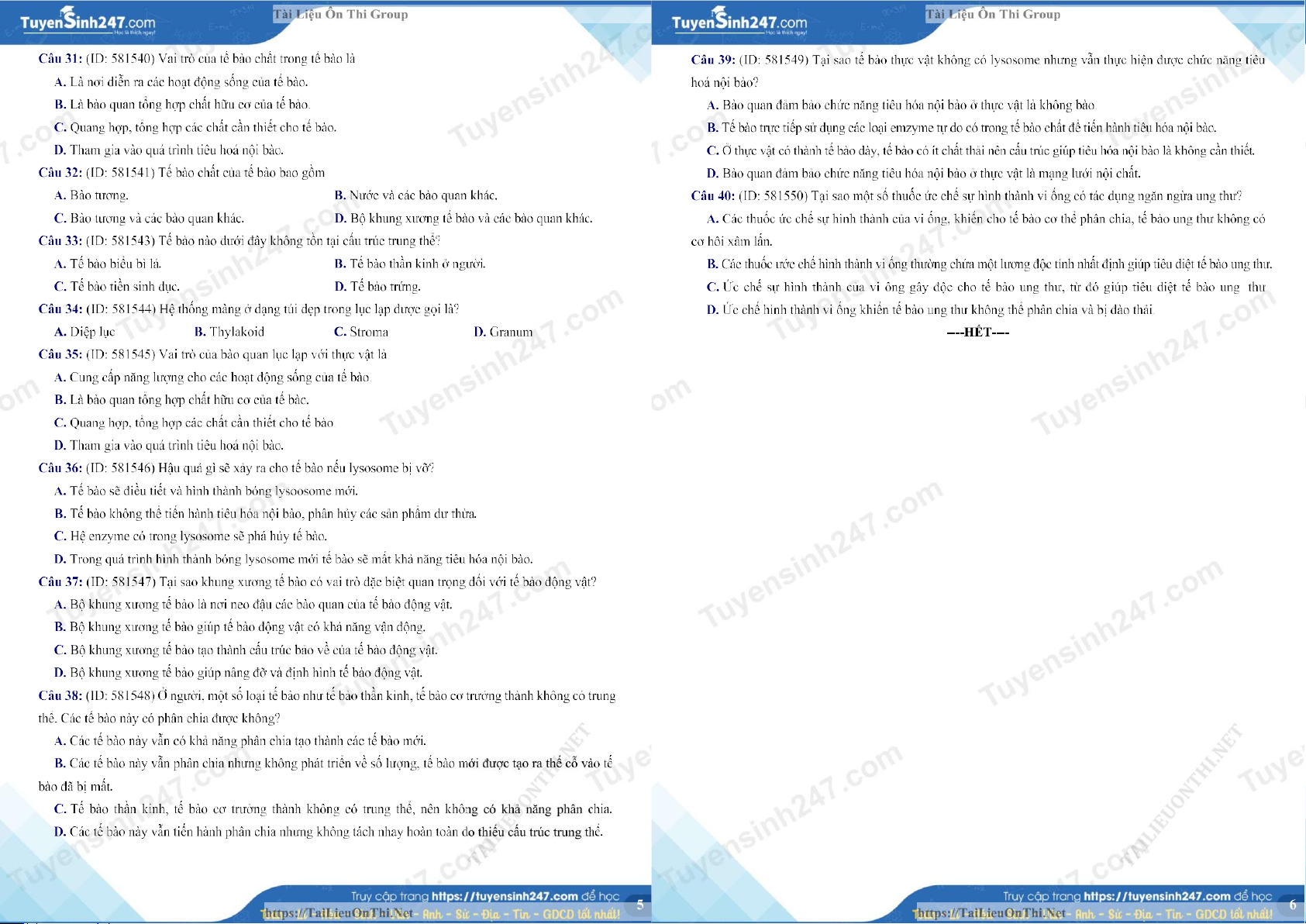 Đề thi trắc nghiệm ôn tập môn sinh học phân tử –Trường Đại học Nguyễn Tất Thành