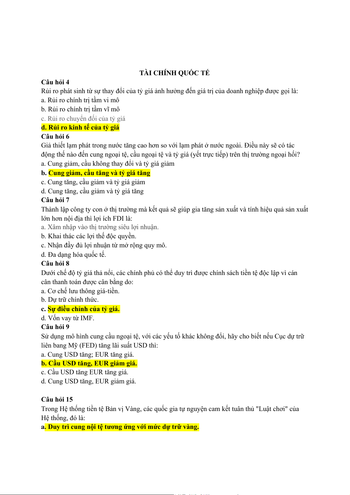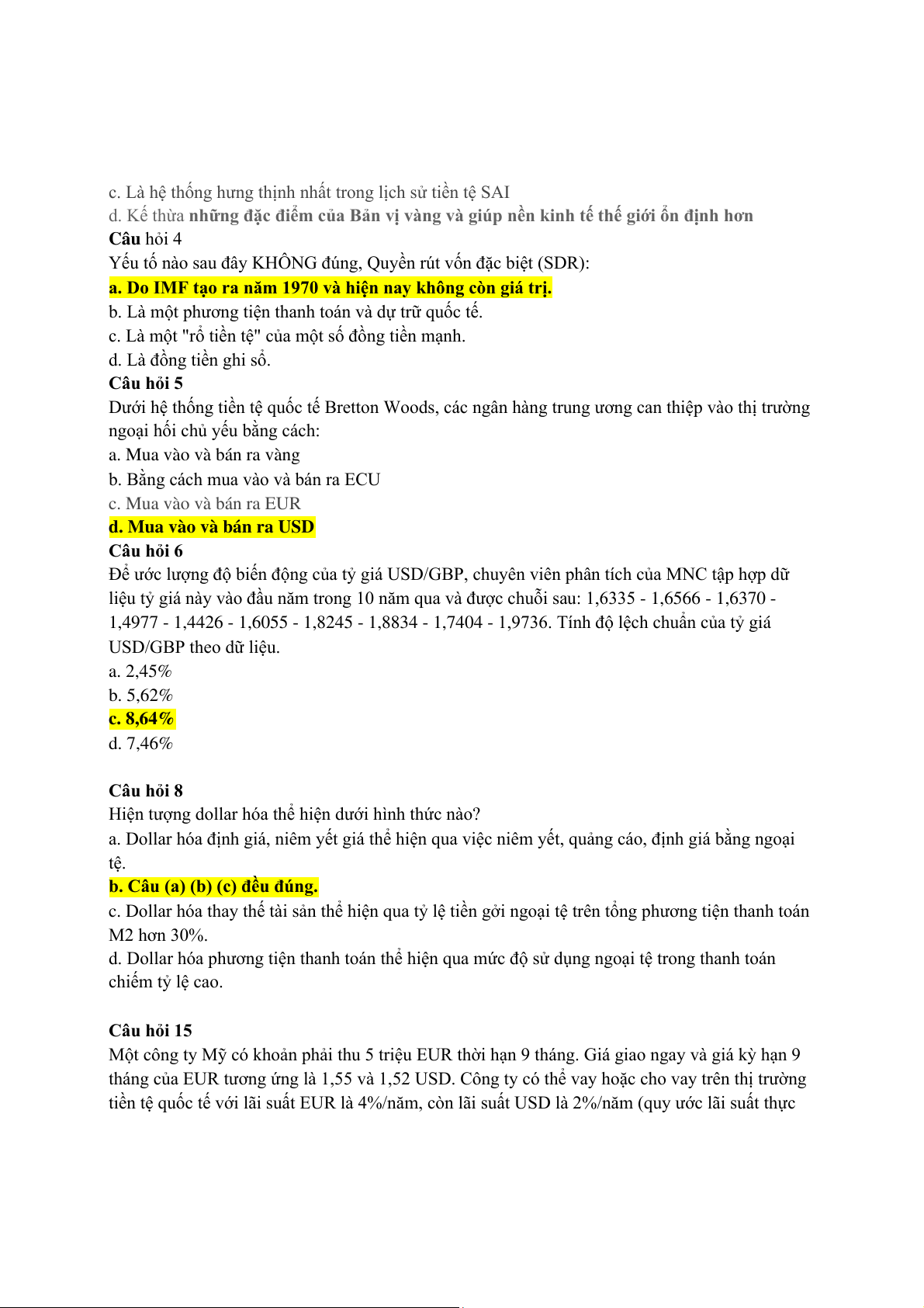 TÀI CHÍNH QU ỐC TẾ Câu hỏi 4