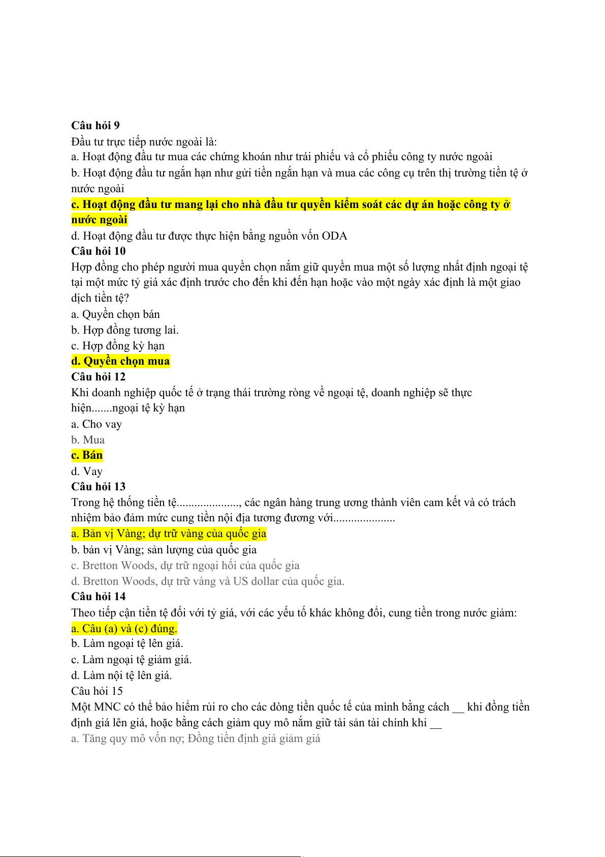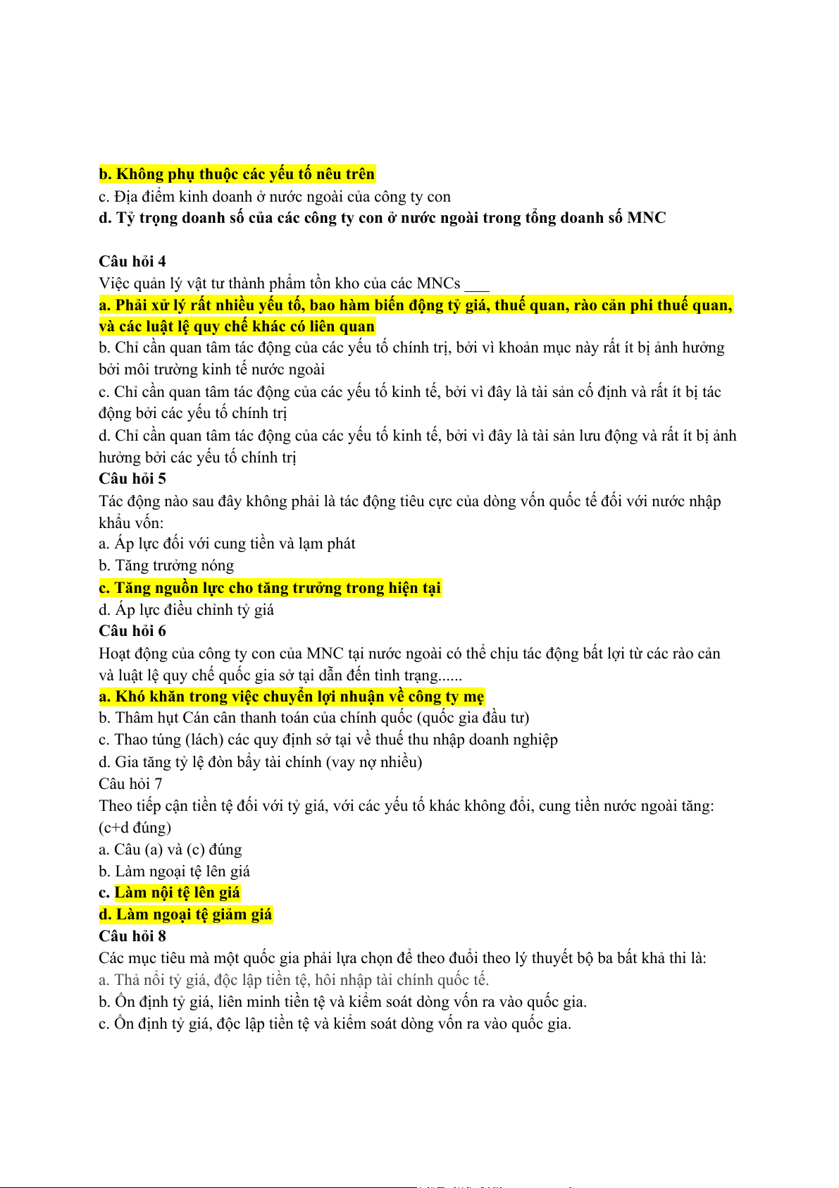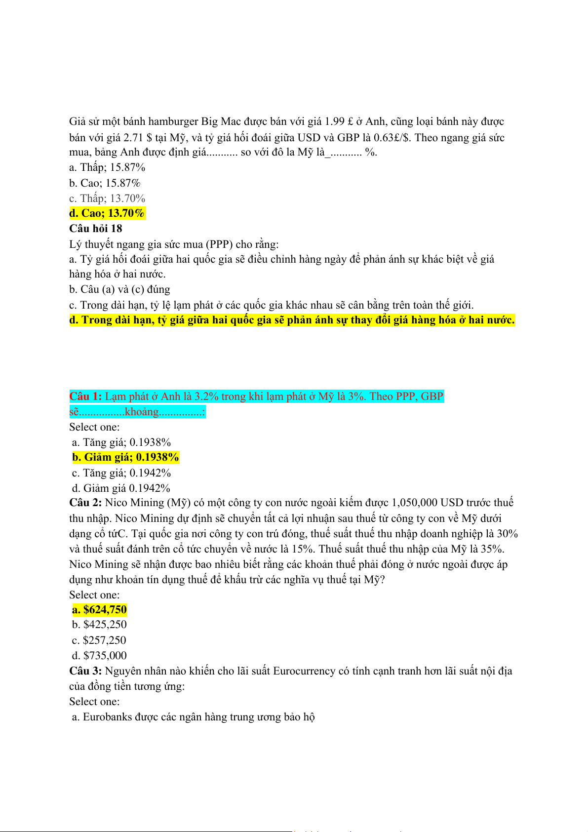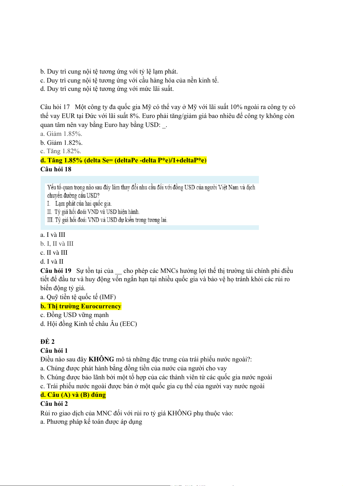 Câu hỏi 17 Một công ty đa quốc gia Mỹ có thể vay ở Mỹ với lãi suất 10% ngoài ra công ty có