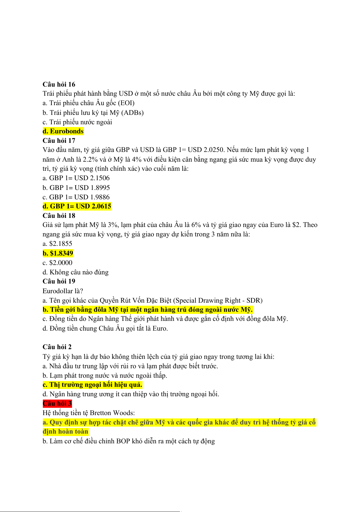 mua, bảng Anh được định giá........... so với đô la Mỹ là_........... %. a. Thấp; 15.87% b. Cao; 15.87% c. Thấp; 13.70% d. Cao; 13.70% Câu hỏi 18