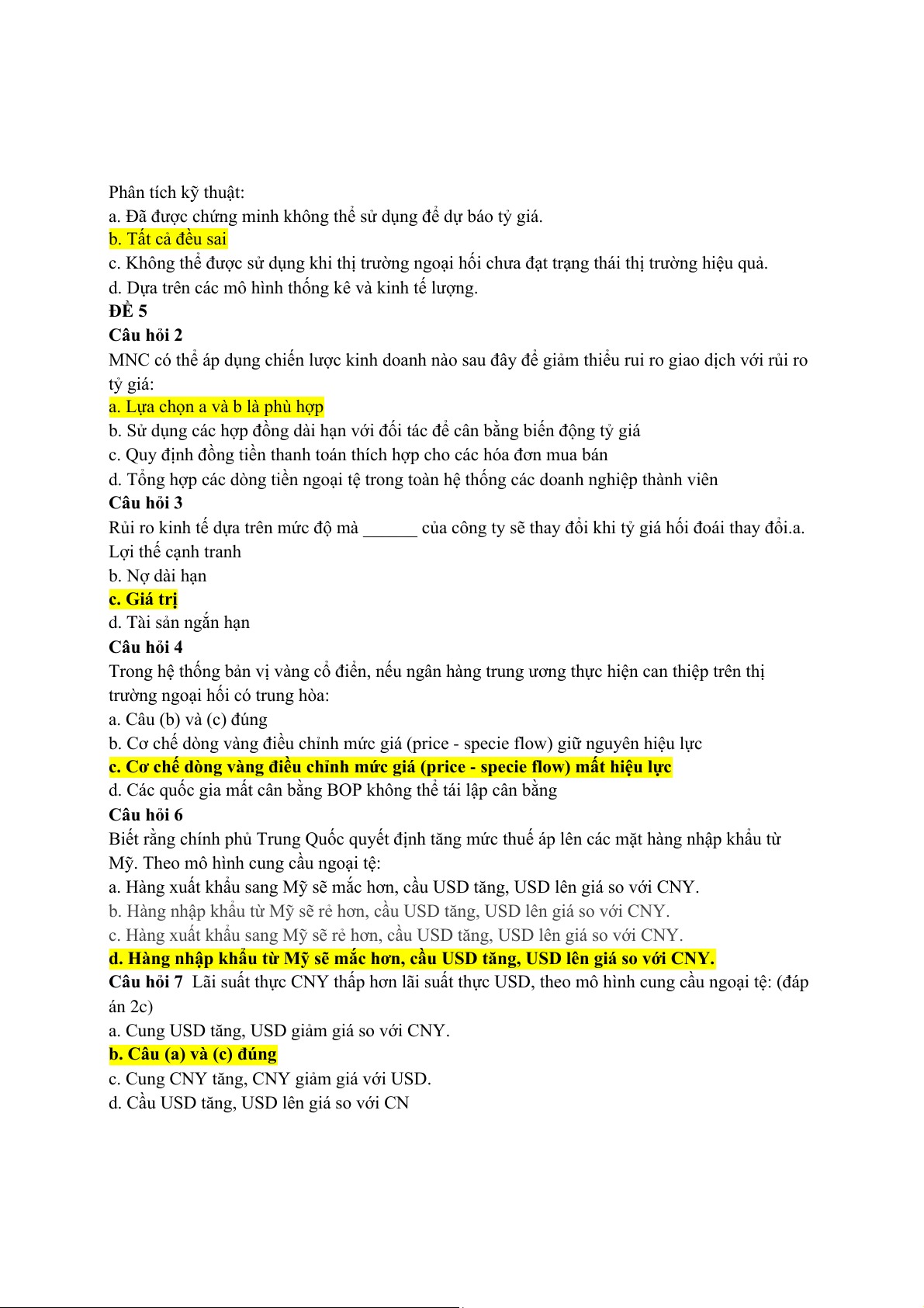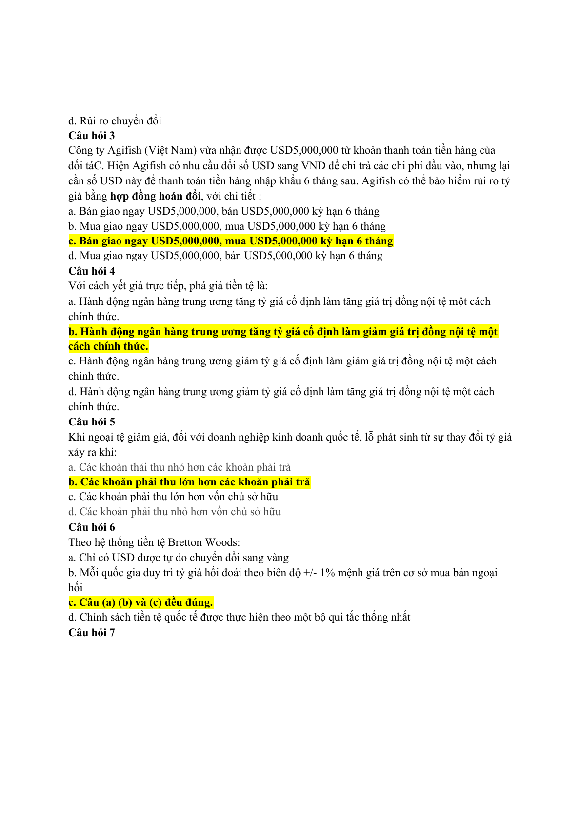 d. Rủi ro kinh tế của tỷ giá Câu hỏi 6