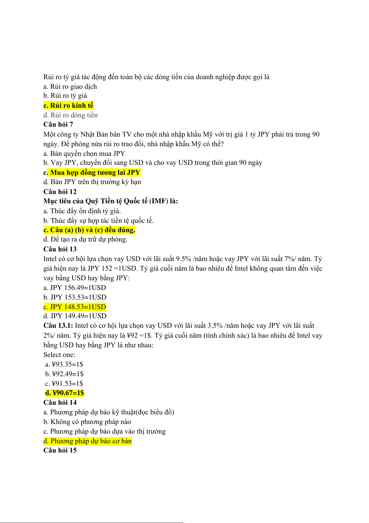 d. Huy động JPY tại Nhật Bản vì chi phí thấp hơn Câu hỏi 11