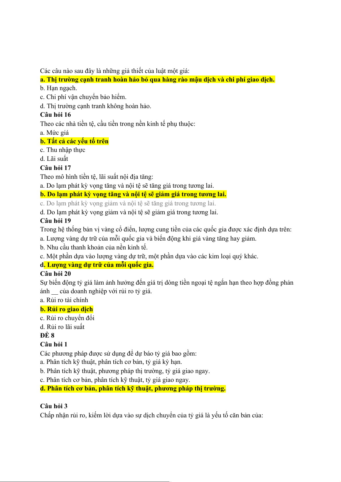 d. Nội tệ sẽ lên giá trên thị trường ngoại hối. Câu hỏi 9