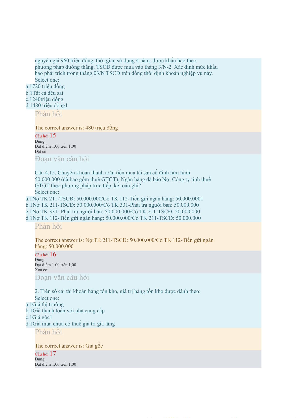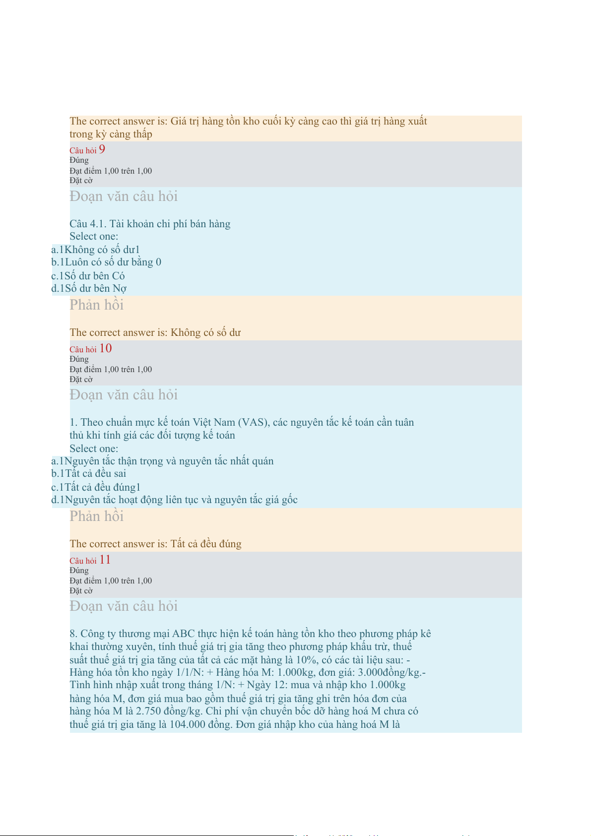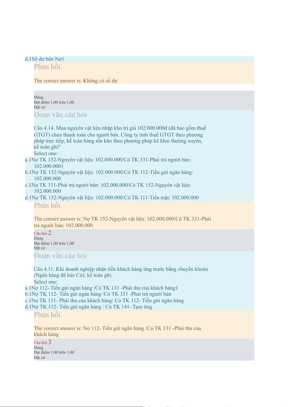 trả người bán: 102.000.000 Câu hỏi 2 Đúng Đạt điểm 1,00 trên 1,00 Đặt cờ Đoạn văn câu hỏi