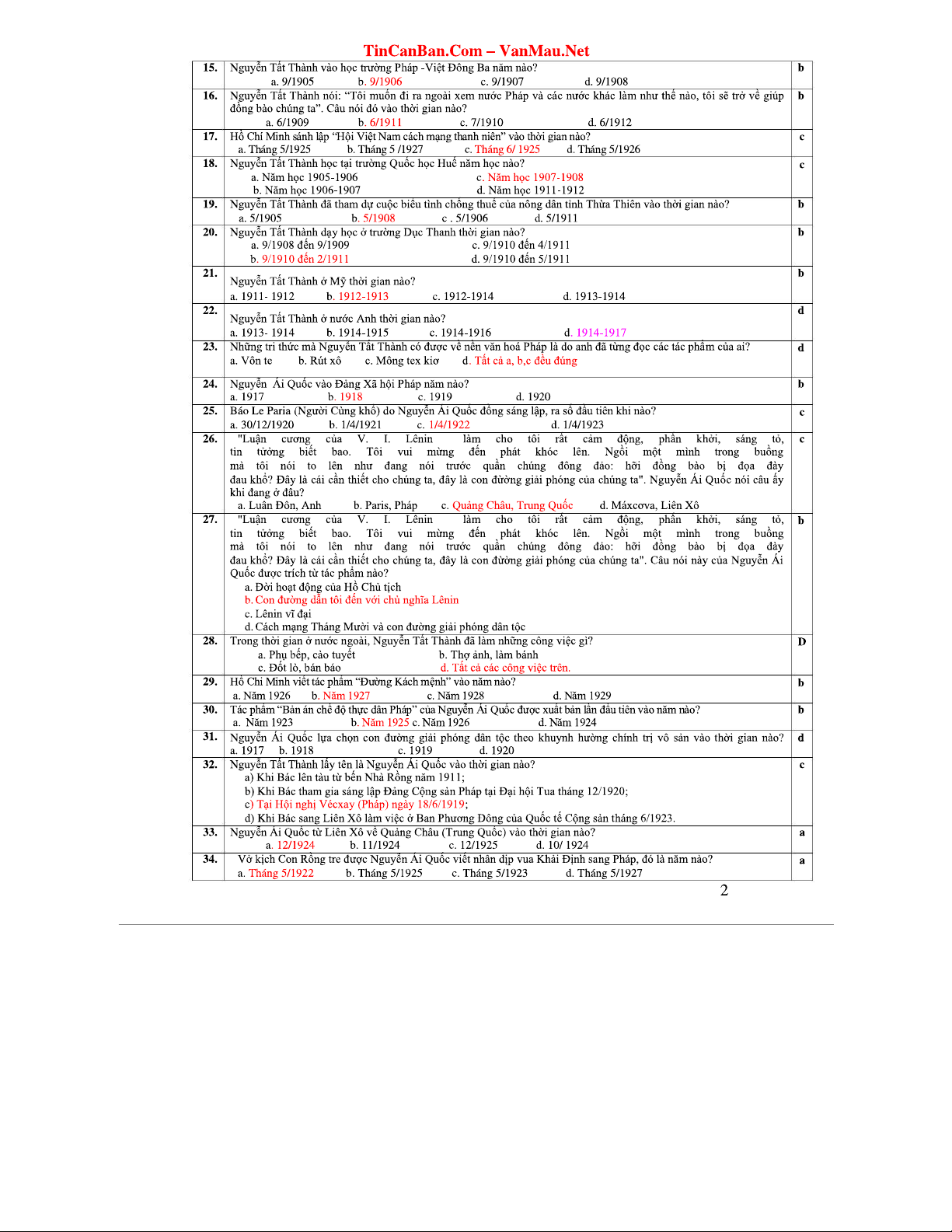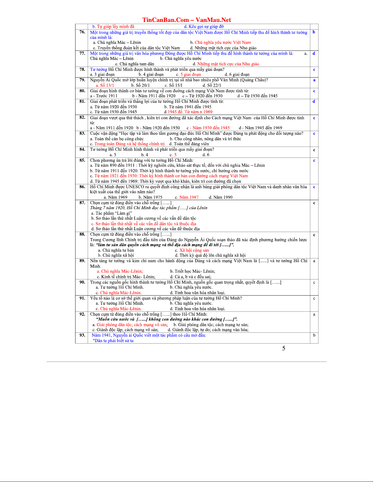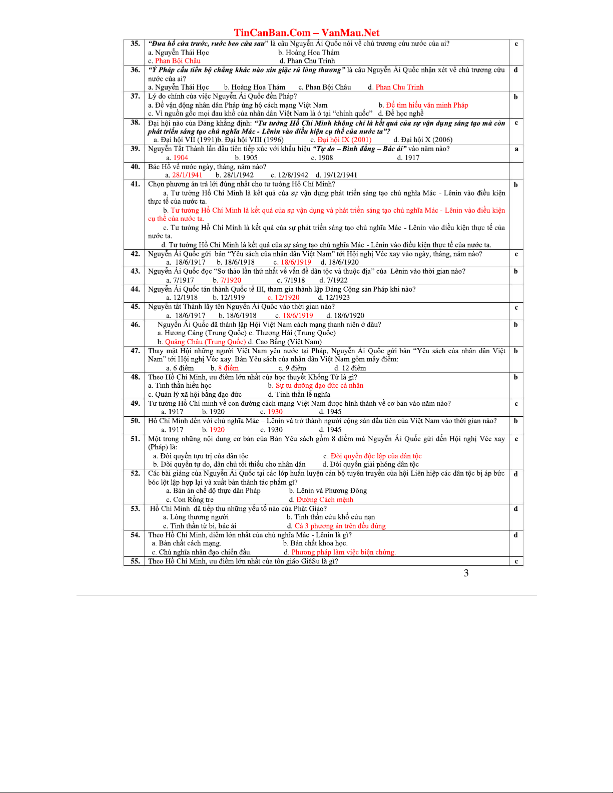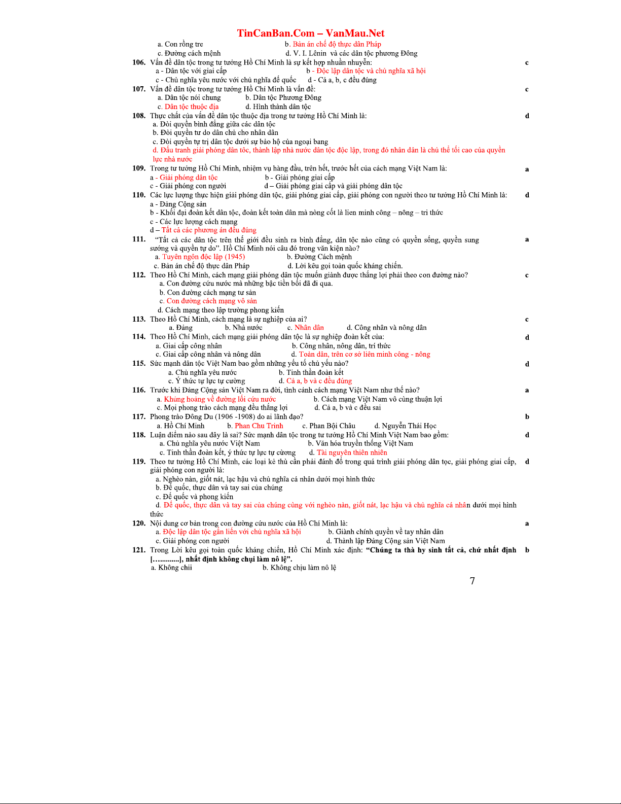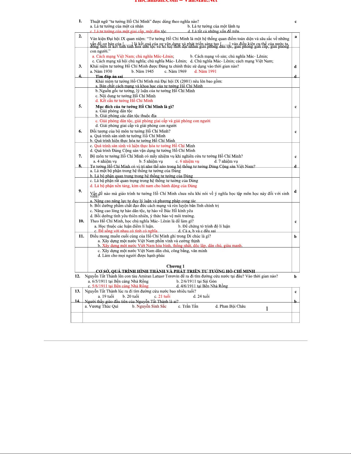 Đề thi trắc nghiệm Tư tưởng Hồ Chí Minh - Mã 426