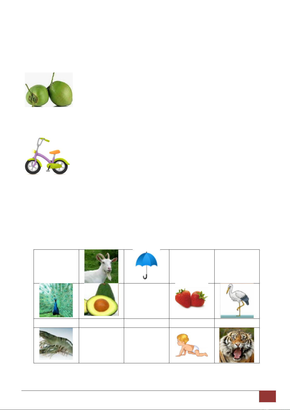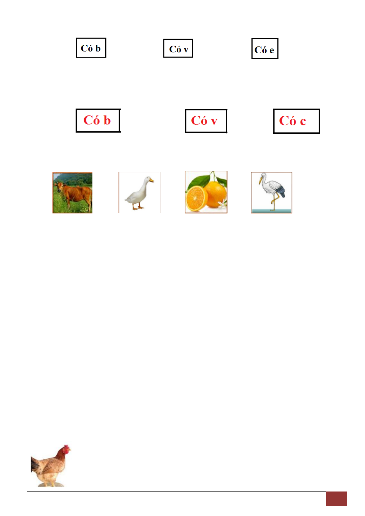 Câu 3. Tiếng nào có chữ “ô”? a. sợ b. sệ c. bộ d. bọ Câu 4. Đây là con gì? a. cá b. gà c. bò d. bê 2