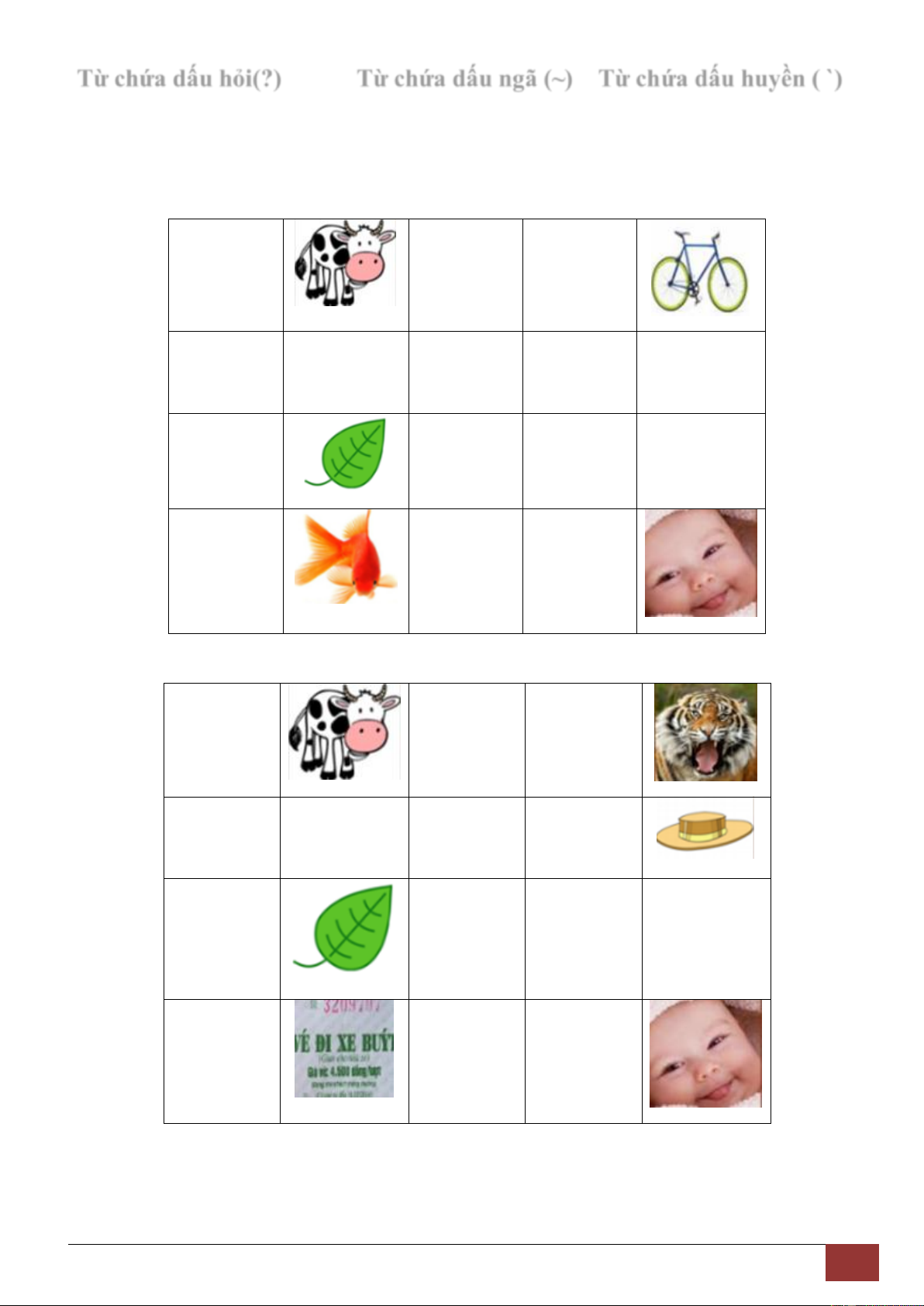 + Từ chứa dấu huyền ( ` ): bò; vàng; thuyền Bài 3. Bảng 1