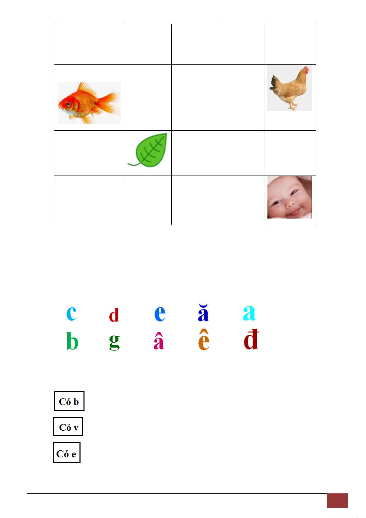 Câu 5. Các tiếng "ba, bé, bể" có chung chữ gì? a. b b. e c. a d. ê