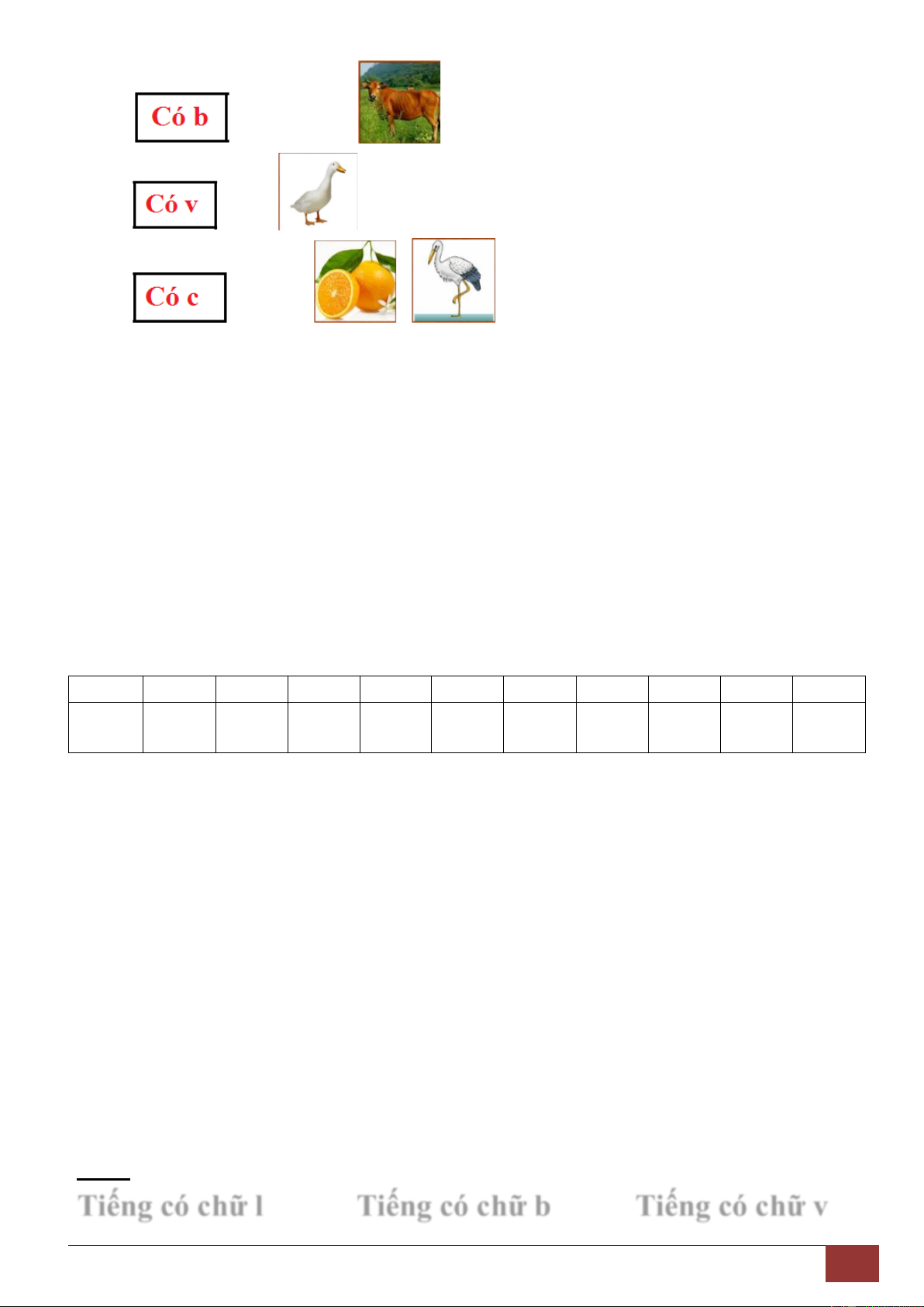 Câu 15. Tiếng nào có chứa “c” ? a. bê b. gỗ c. cỏ d. be ĐỀ SỐ 2 Bài 1. Tiếng có chữ l Tiếng có chữ b Tiếng có chữ v 6 Lê vỡ vẽ vó bê lí hẹ bí Xe bề