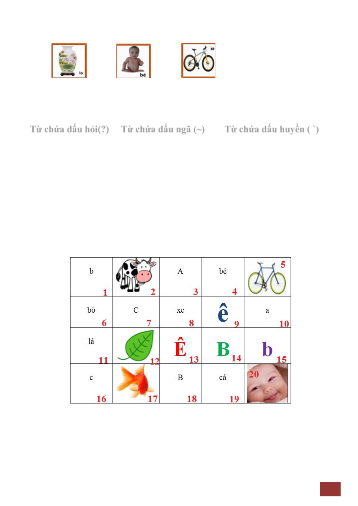 + Tiếng có chữ b: bé; bê; bí; bề