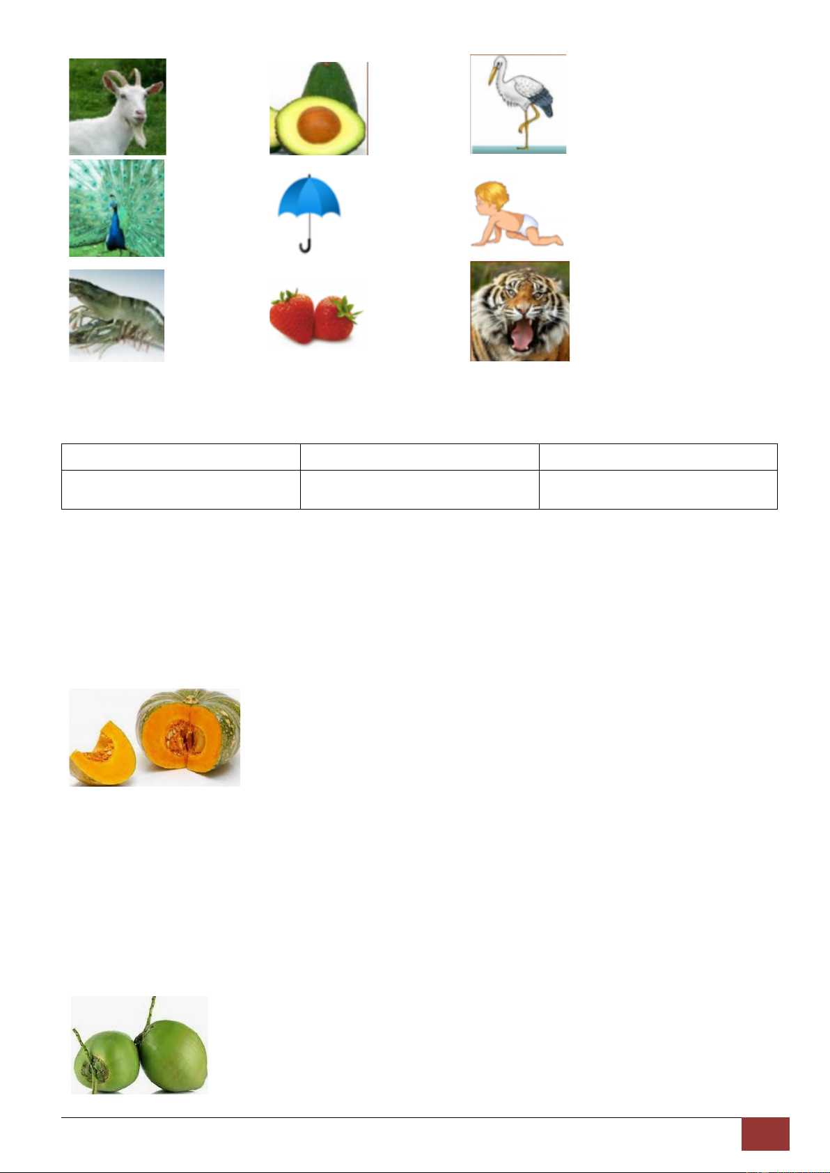 câu 2. Các tiếng "bố, rổ, đố" có chung chữ cái nào? a. đ b. r c. ô d. b Câu 3. Đây là quả gì? a. dưa lê b. đu đủ c. dâu tây d. bí đỏ