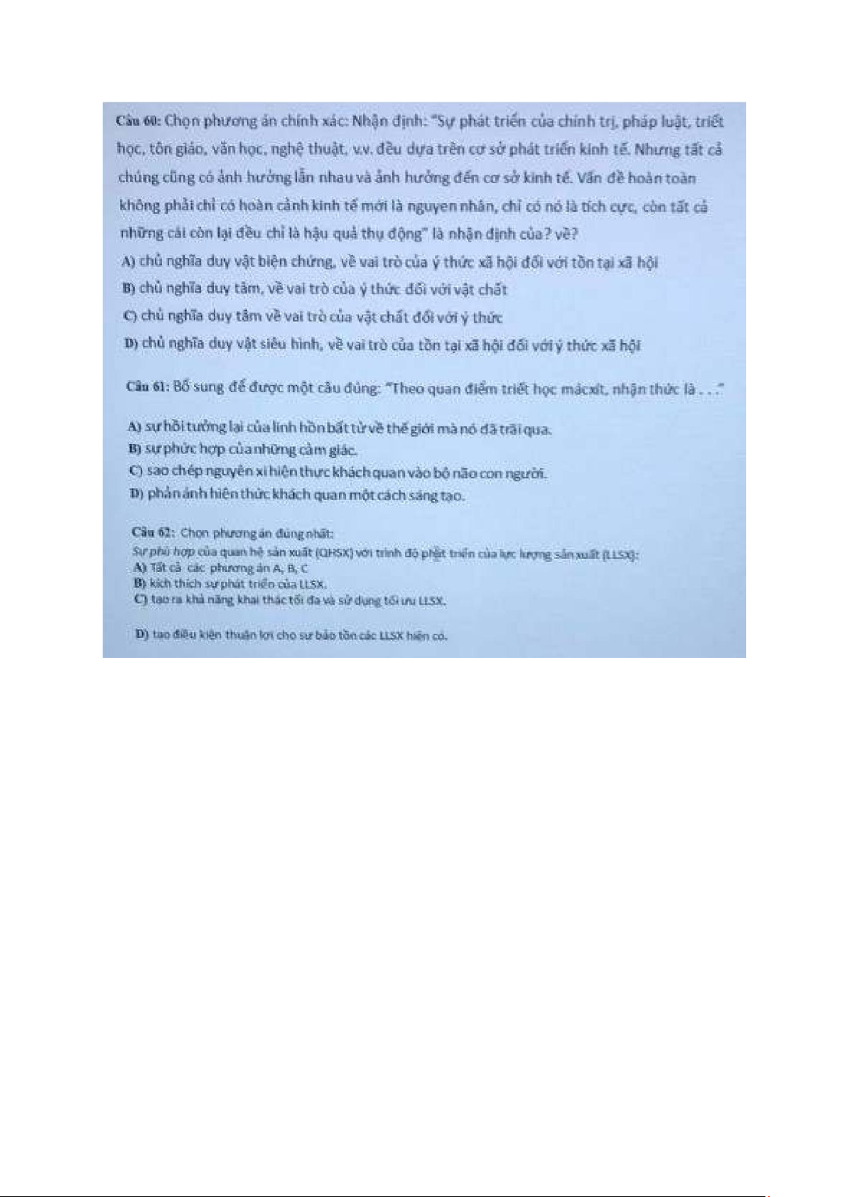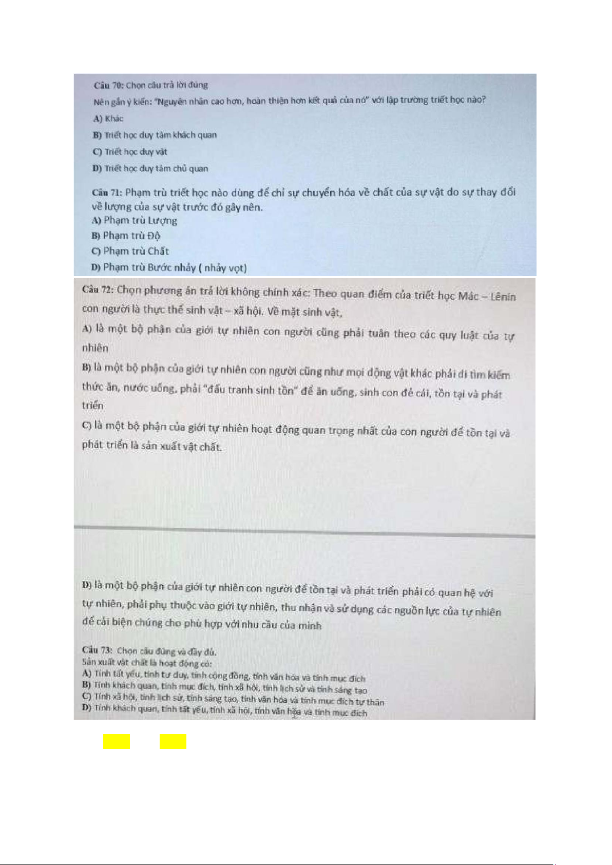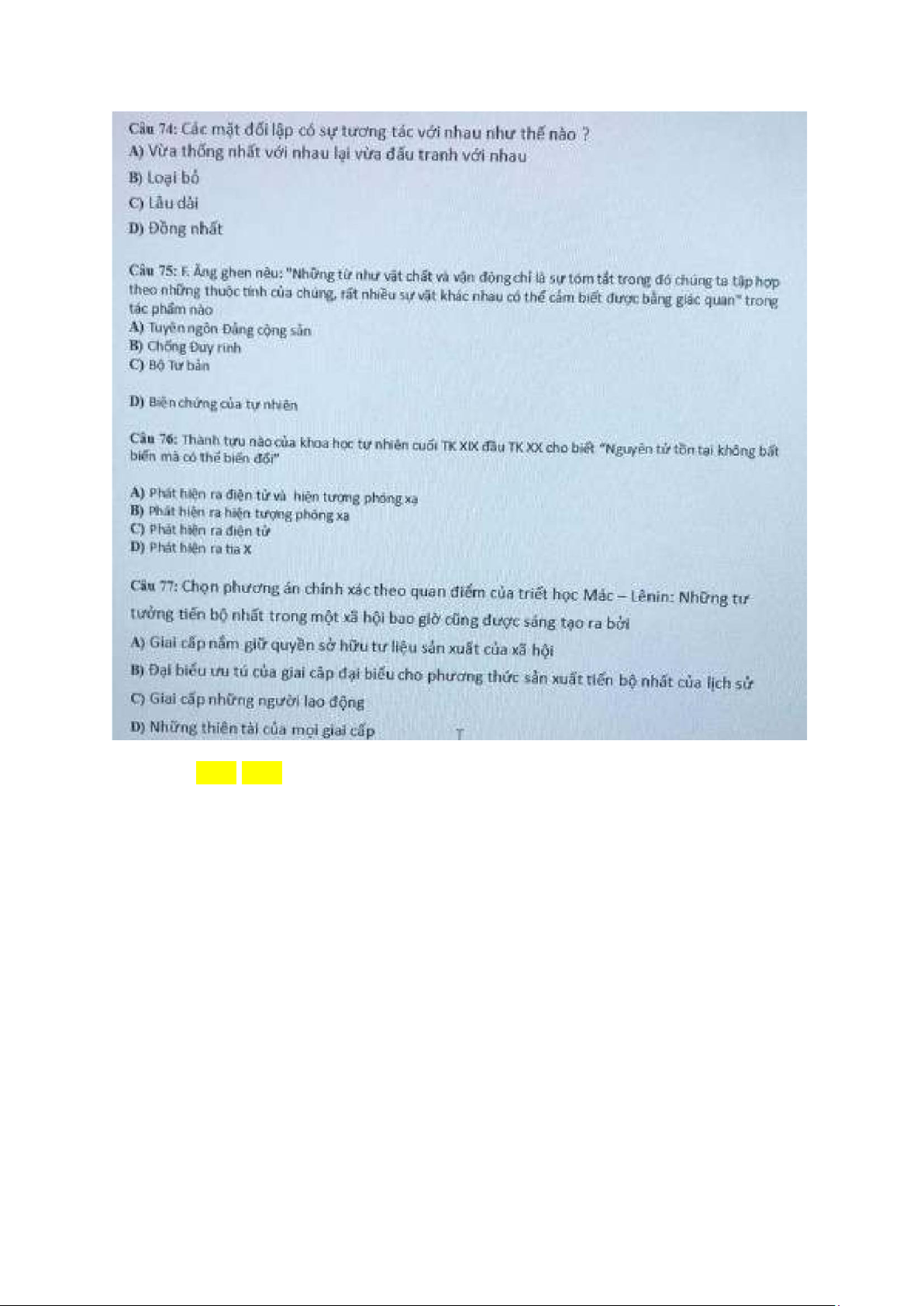 ANS 74A 75… 76… 77B Câu 78: Chọn câu trả lời đúng theo quan điểm duy vật lịch sử lOMoAR cPSD| 41671603 ANS 78D 79B 80C lOMoAR cPSD| 41671603 ĐỀ 2 3B/D lOMoAR cPSD| 41671603