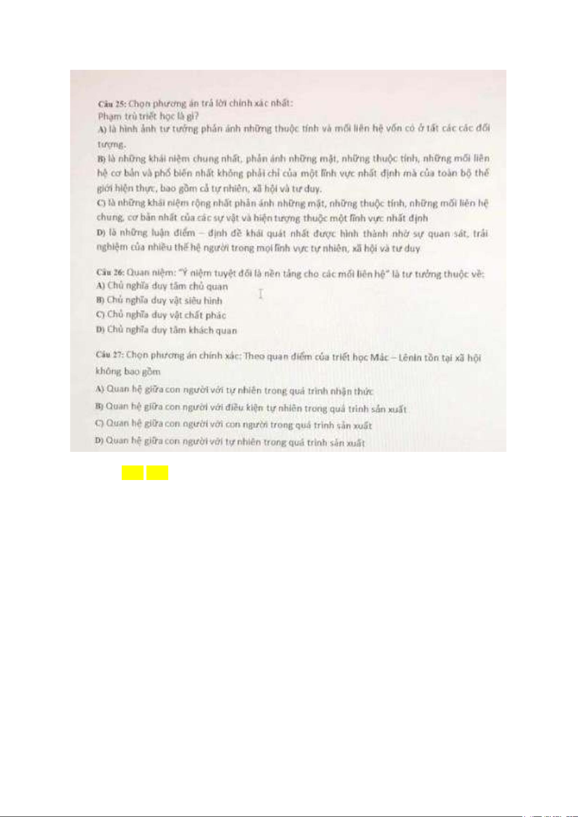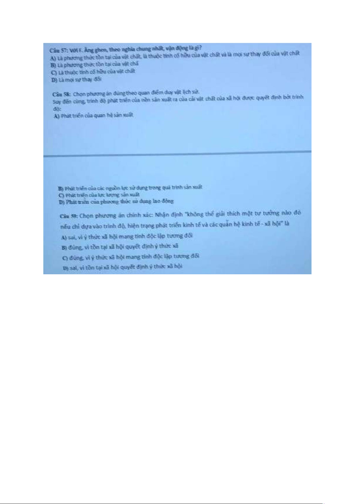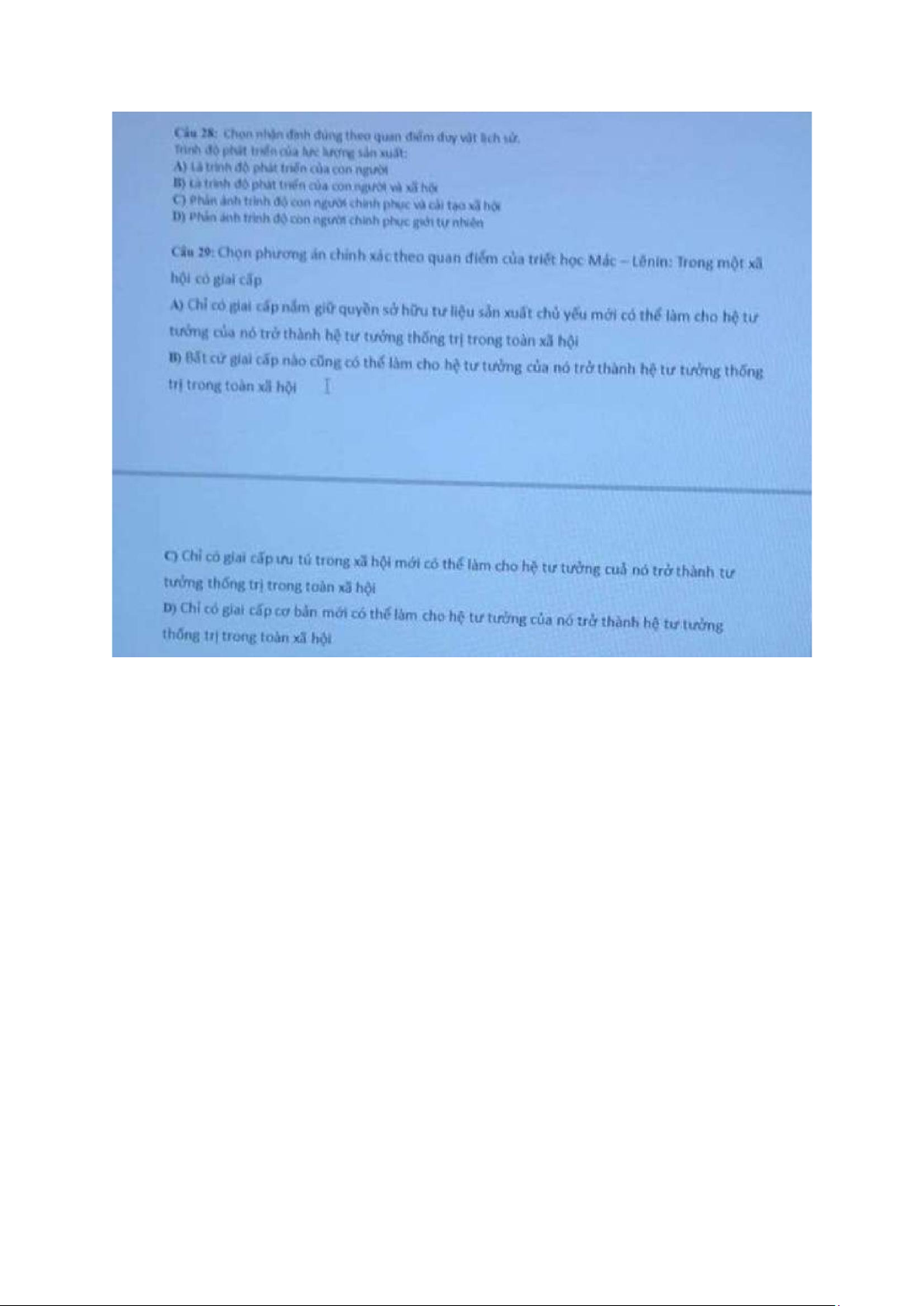 ANS 74A 75… 76… 77B Câu 78: Chọn câu trả lời đúng theo quan điểm duy vật lịch sử lOMoAR cPSD| 41671603 ANS 78D 79B 80C lOMoAR cPSD| 41671603 ĐỀ 2 3B/D lOMoAR cPSD| 41671603