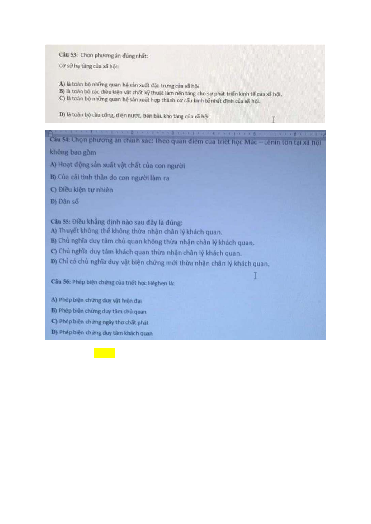 D) Quan niệm duy vật tự nhiên và tầm thường. ANSWER: C lOMoAR cPSD| 41671603 ANS 53C 54B 55B/C 56D lOMoAR cPSD| 41671603 ANS 57A 58C 59C lOMoAR cPSD| 41671603 ANS 60A 61D 62A lOMoAR cPSD| 41671603 ANS 63… 64… 65A? lOMoAR cPSD| 41671603 ANS 66C 67B 68B 69B lOMoAR cPSD| 41671603 ANS 70… 71D 72… 73B lOMoAR cPSD| 41671603