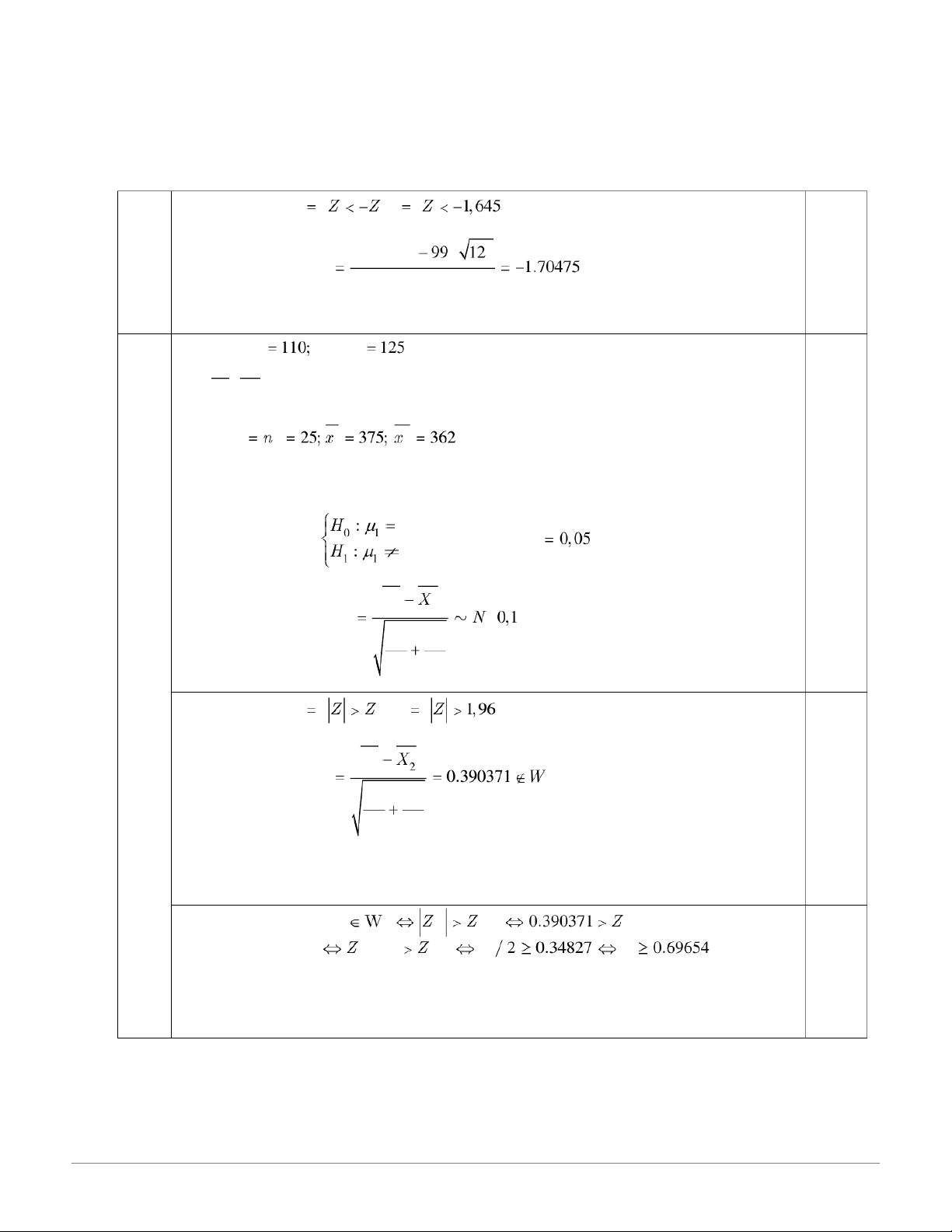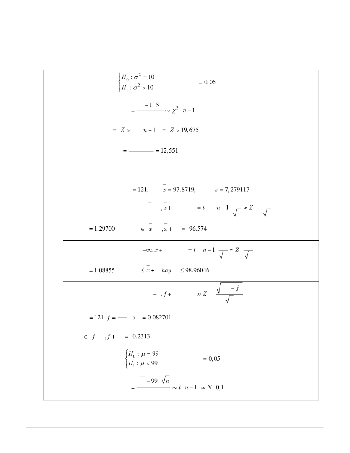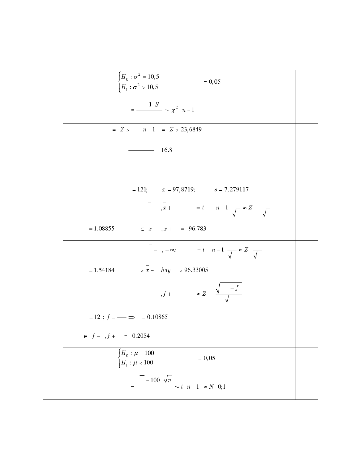 Vậy bác bỏ H0, điều nghi ngờ trên chấp nhận được ở mức ý nghĩa 5%. 6 a) Ta có: 0,5 1 2