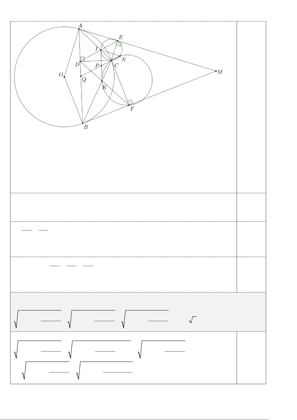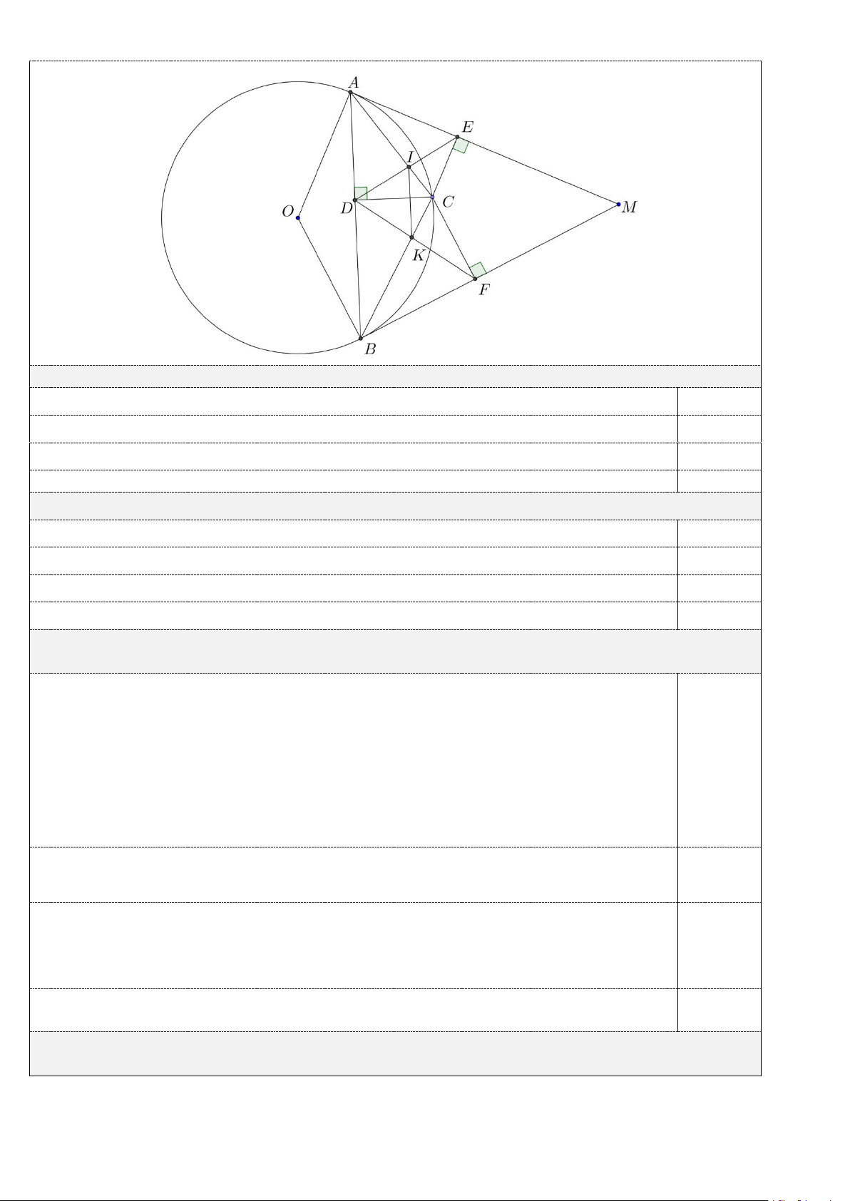 Câu IV. (4,0 điểm) Cho đường tròn (O) . Từ điểm M bên ngoài đường tròn kẻ hai tiếp tuyến M ,