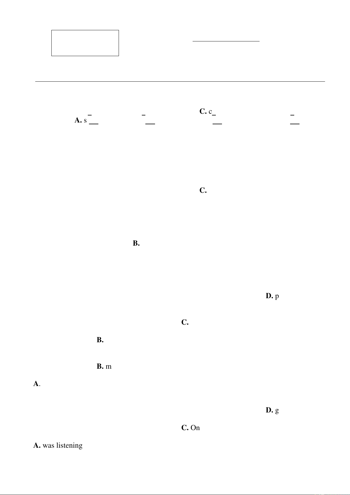 Question 12: I _____________to the radio when the doorbell rang. A. was listening B. listened C. listens D. had listened 1