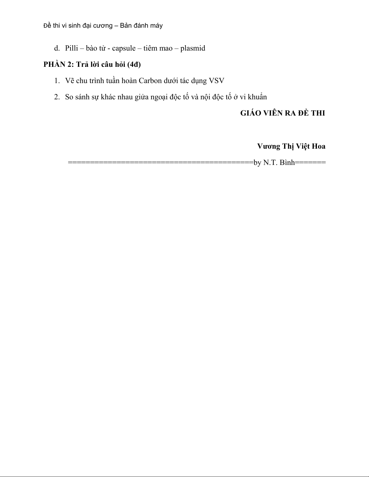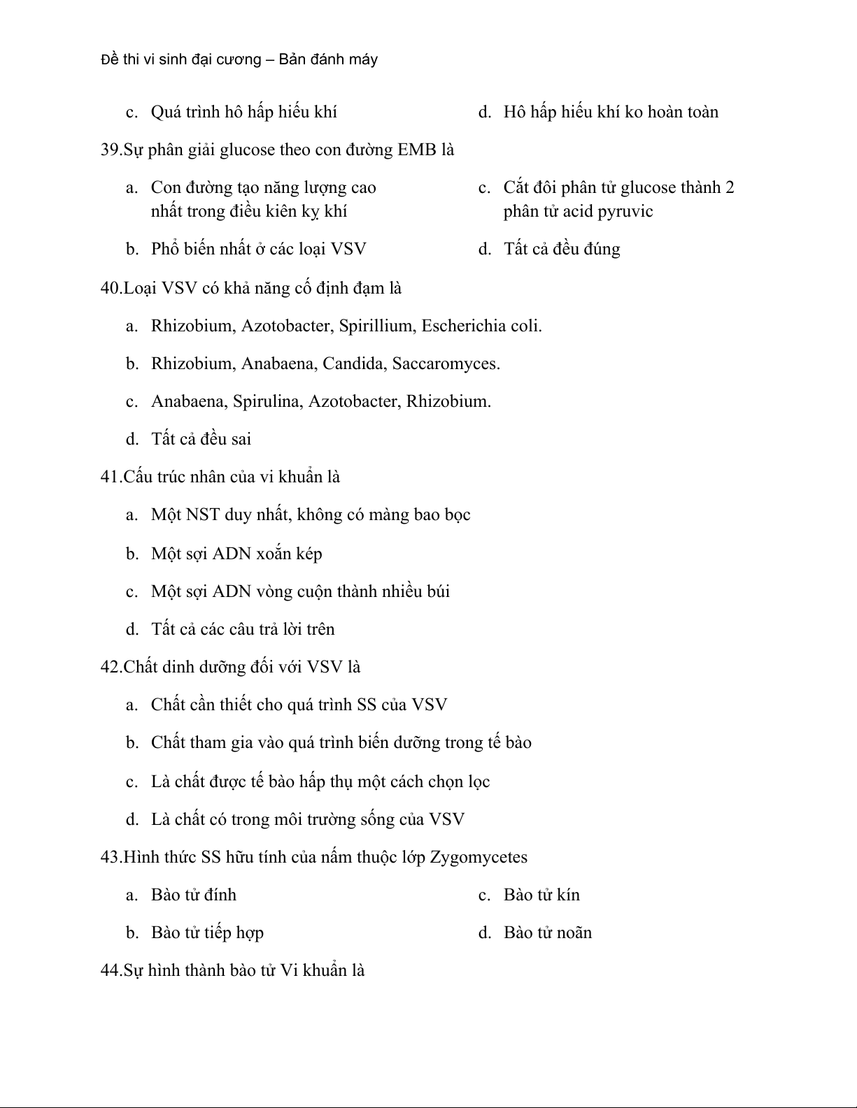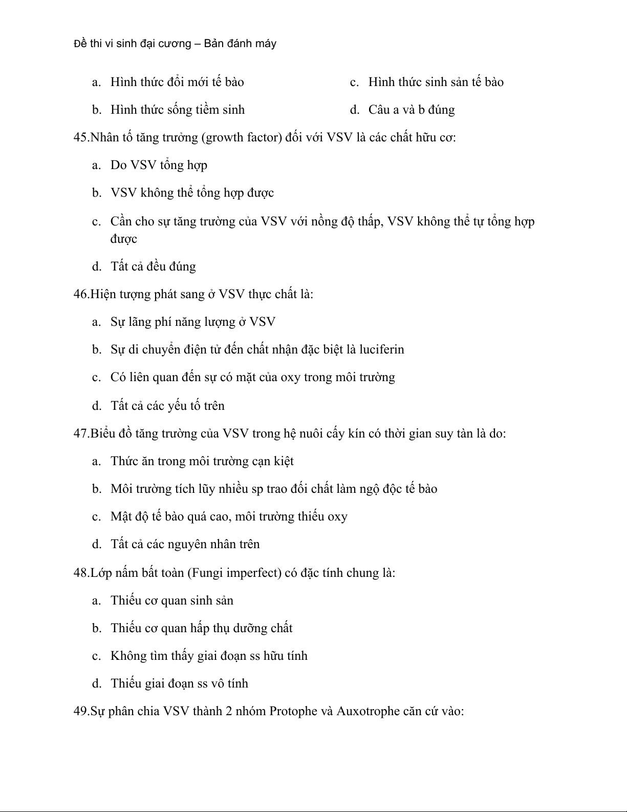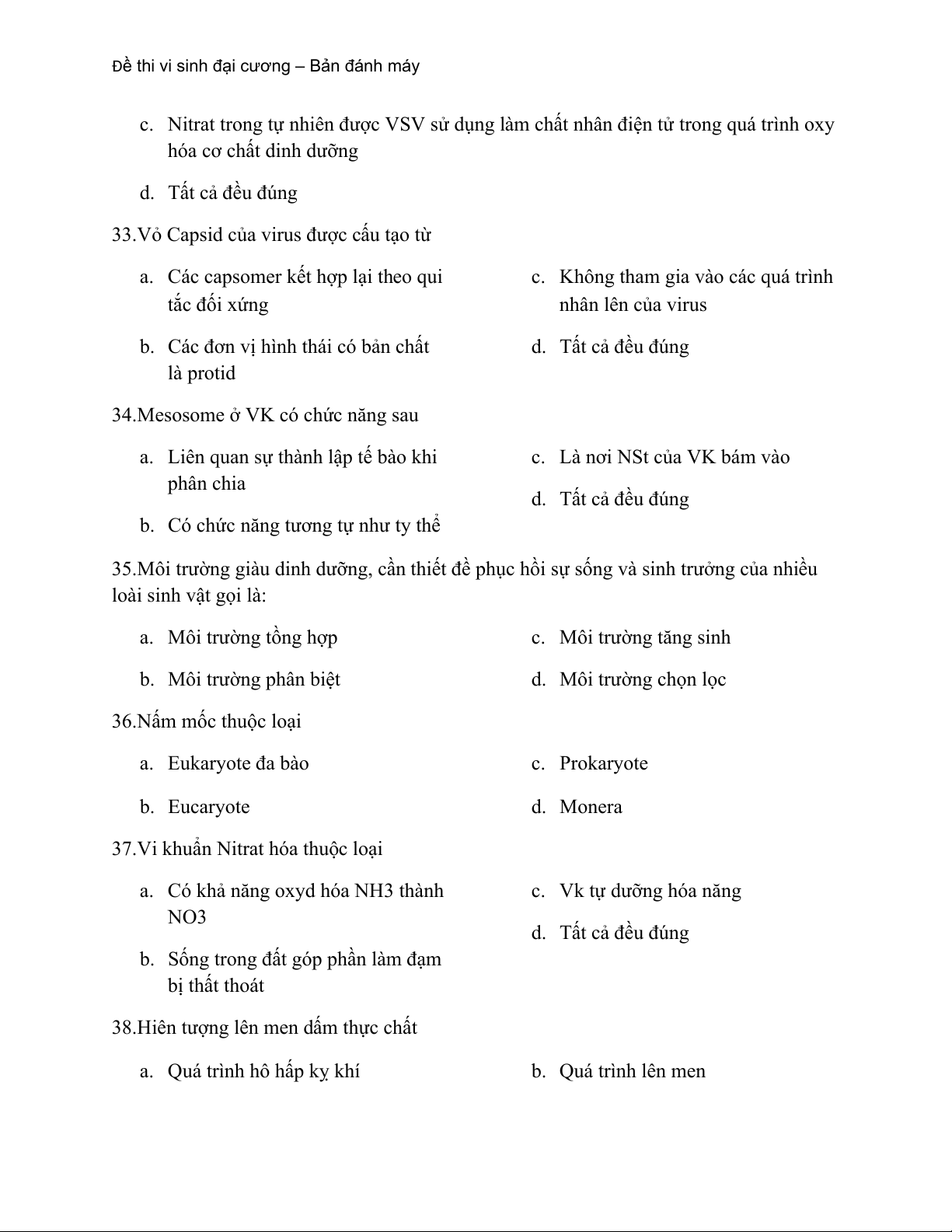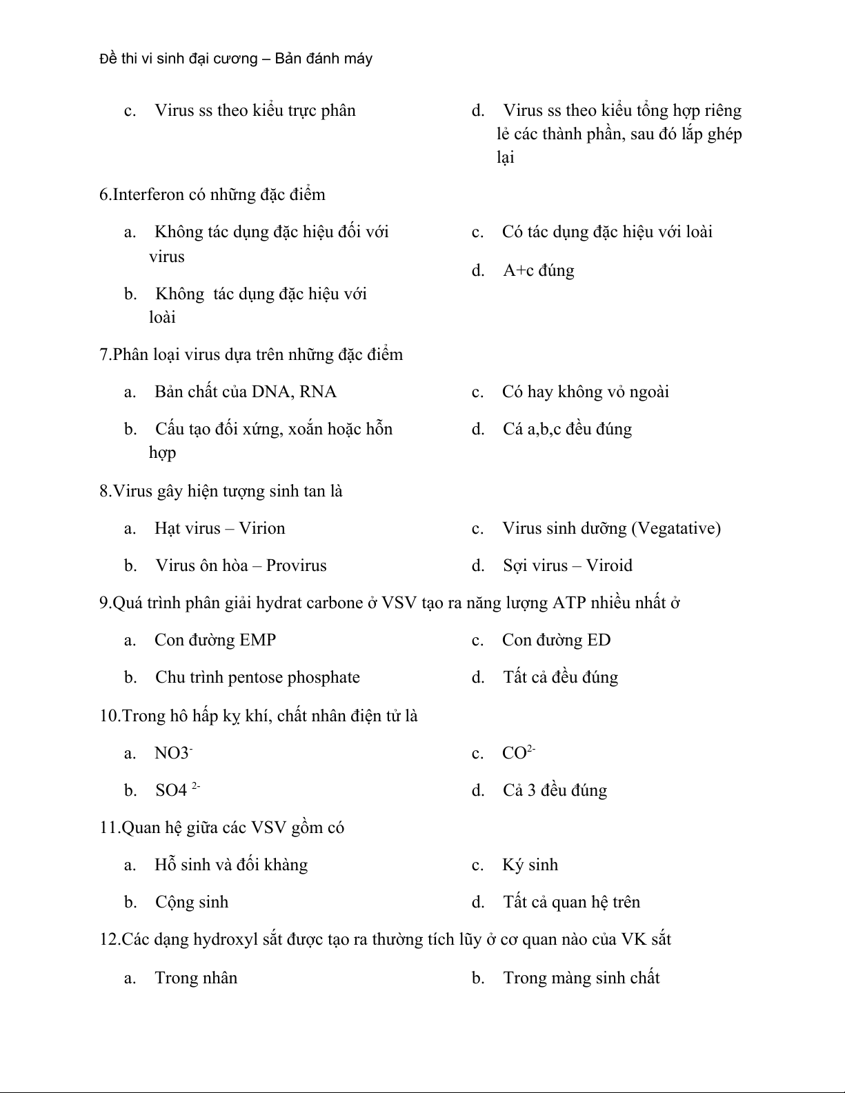 Đề thi vi sinh đại cương – Bản đánh máy c. Trong lớp bao nhày d. Trong lisosome