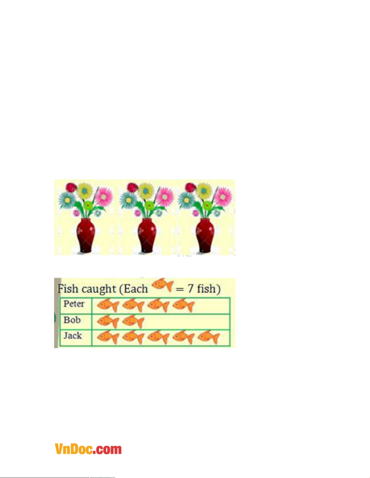 Question 7: How many flowers are there? Question 8: Bob caught ......... fish. Question 9: