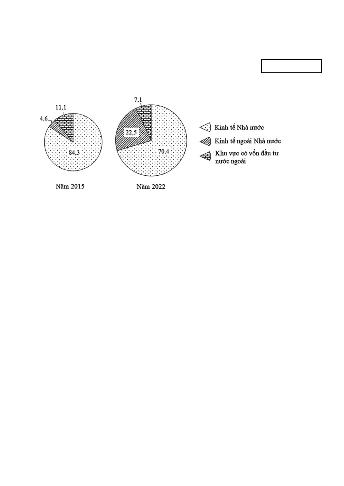 D. Năm 2022 so với năm 2015, tỉ trọng khu vực có vốn đầu tư nước ngoài giảm .