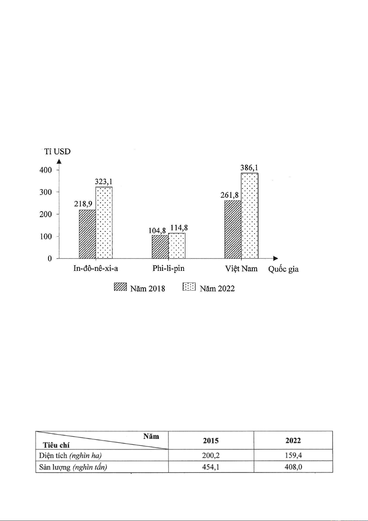 Câu 2: Cho bảng số liệu: