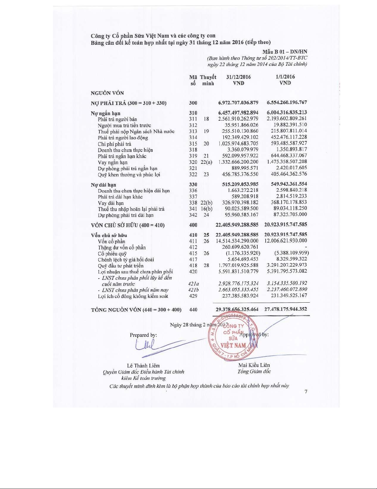 Bảng cân đối kế toán hợp nhất tại ngày ngày 31 tháng 12 năm 2016 Mẫu B 01 – DN/HN