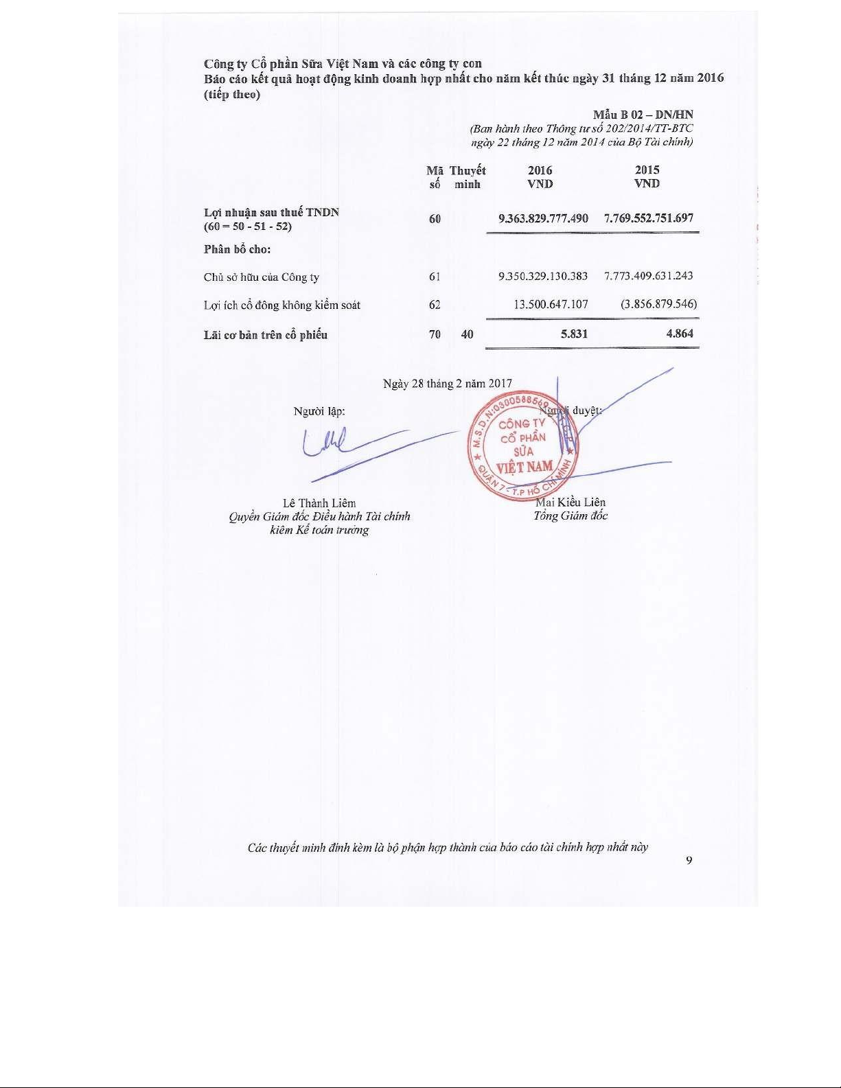 Lợi nhuận sau thuế TNDN 60 9.363.829.777.490 7.769.552.751.697 ( 60 = 50 - 51 - 52 ) lOMoAR cPSD| 40551442
