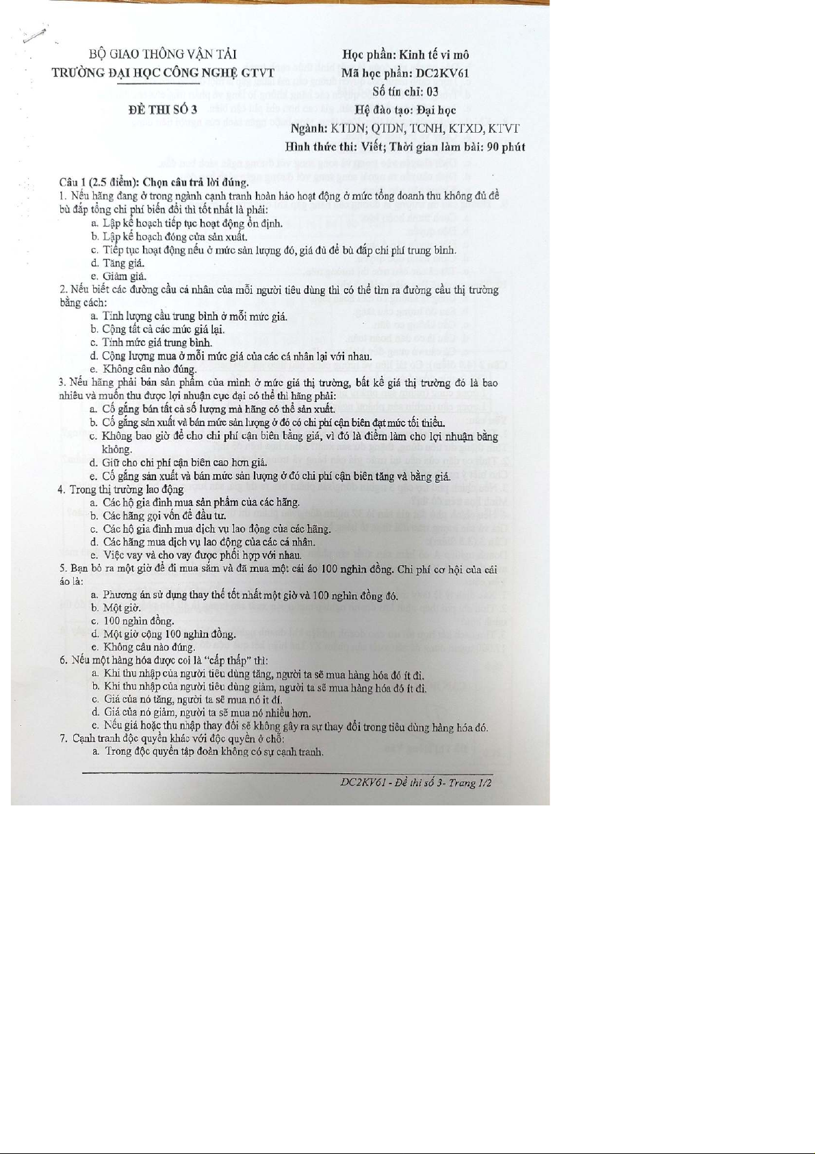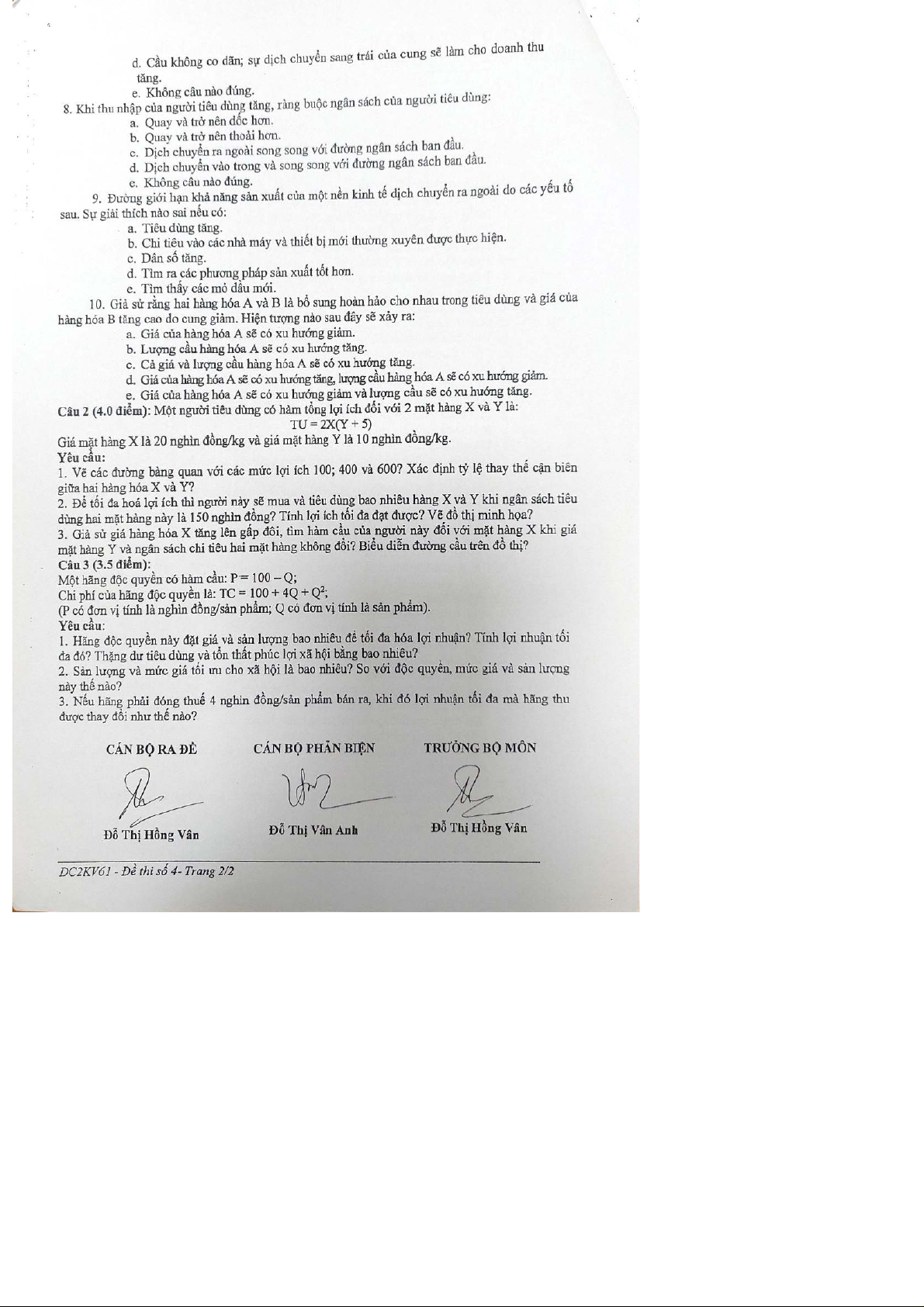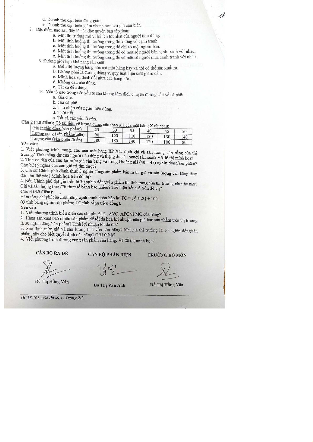 Đề tổng hợp ôn thi Kinh Tế Vi Mô | Microeconomics | Trường Đại học Quốc tế, Đại học Quốc gia Thành phố Hồ Chí Minh