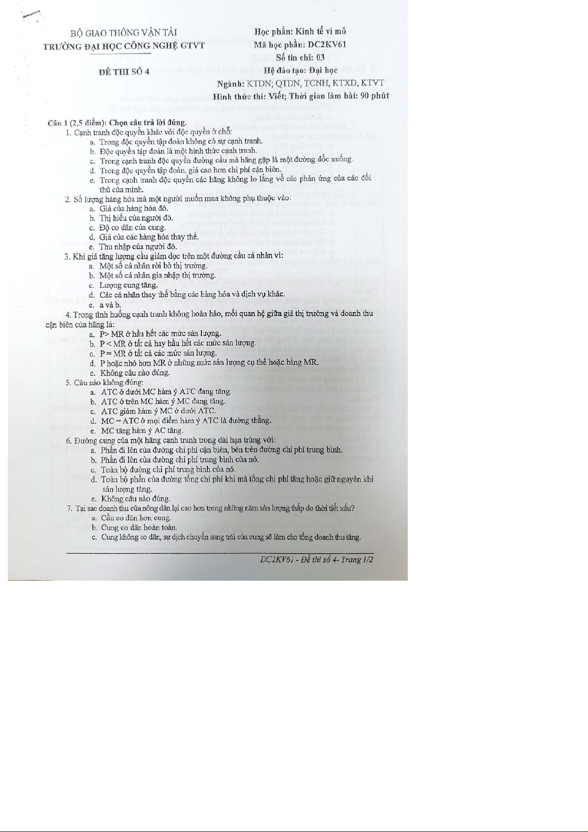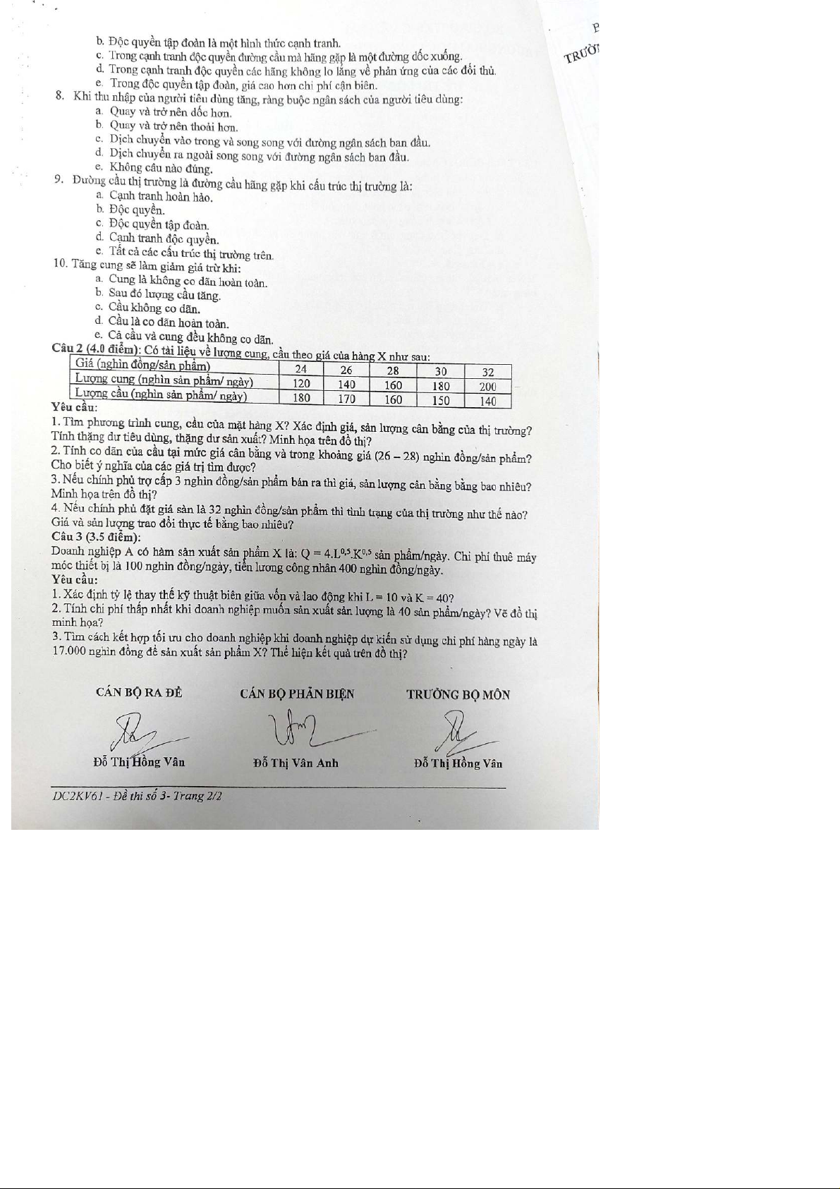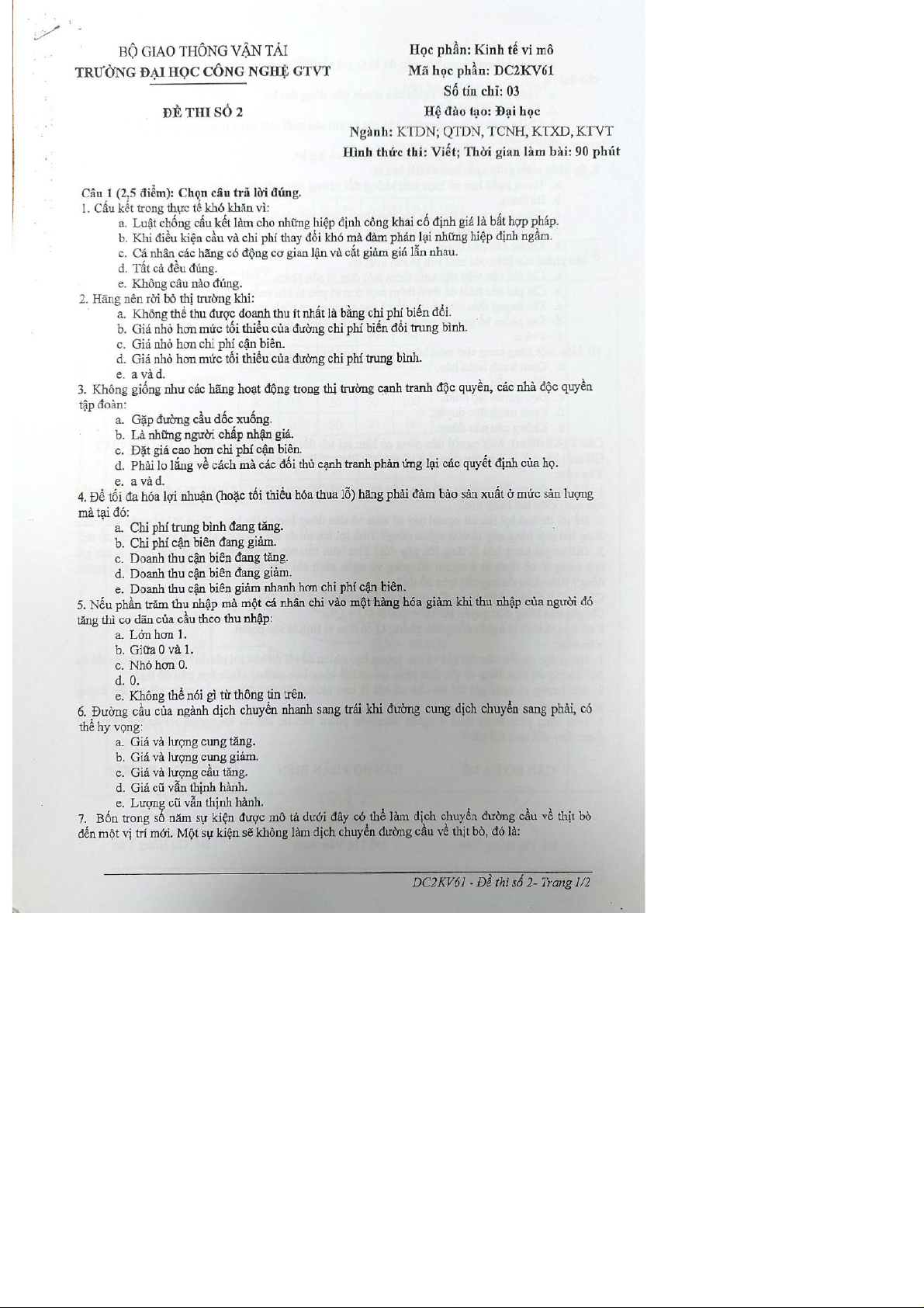 Đề tổng hợp ôn thi Kinh Tế Vi Mô | Microeconomics | Trường Đại học Quốc tế, Đại học Quốc gia Thành phố Hồ Chí Minh