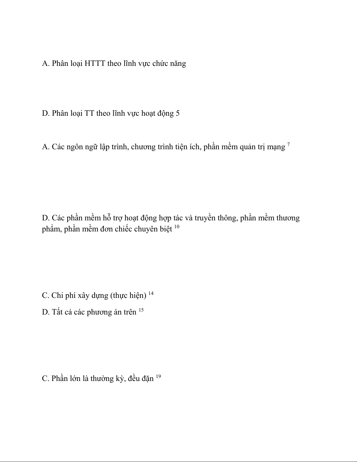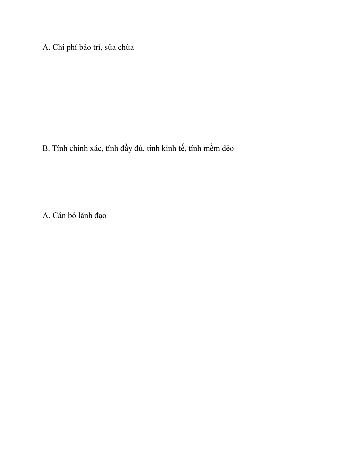 Câu 3: Chi phí cố định cho HTTT gồm: