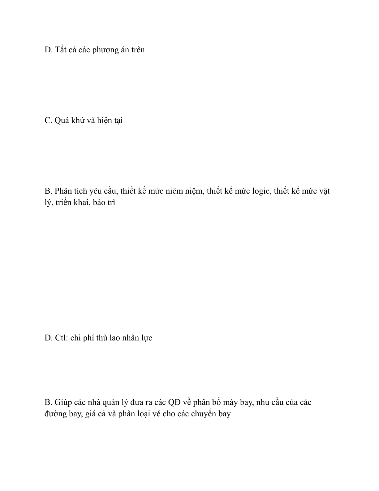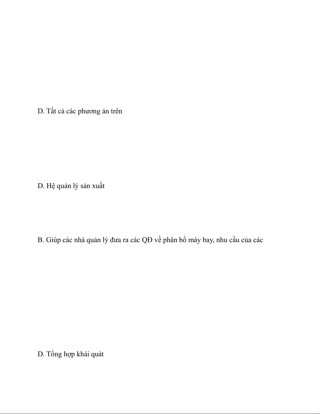 Câu 7: Phát biểu nào đúng về HTTT hỗ trợ ra quyết định hàng không: